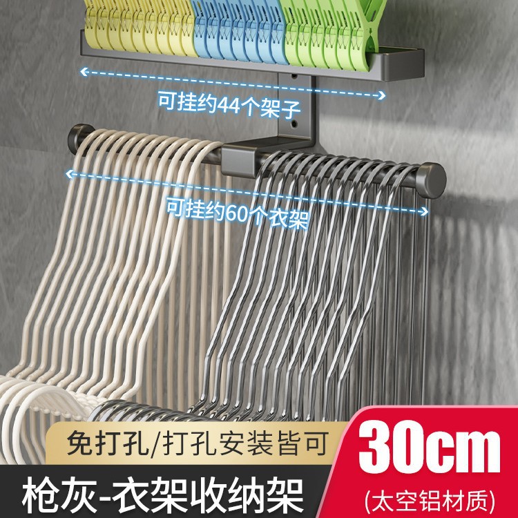 옷걸이 보관 랙 펀치없는 벽 교수형 다기능 핏 랙 가정용 발코니 의류 클립 의류 랙 보관 아티팩트