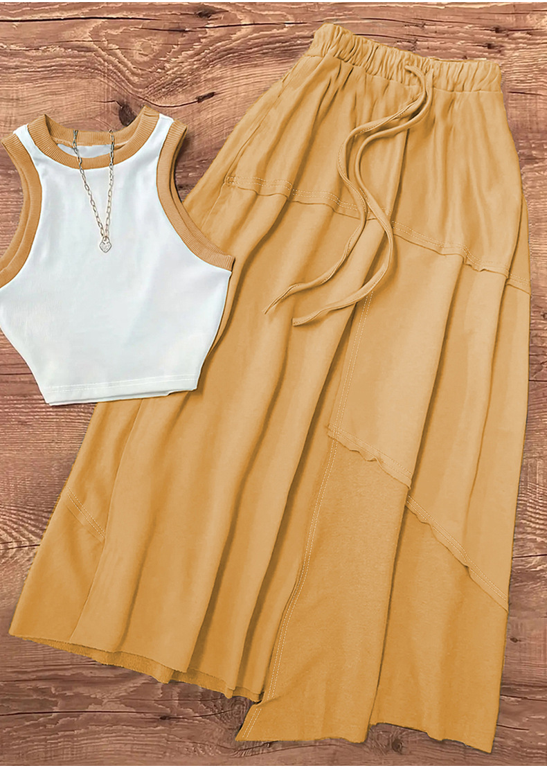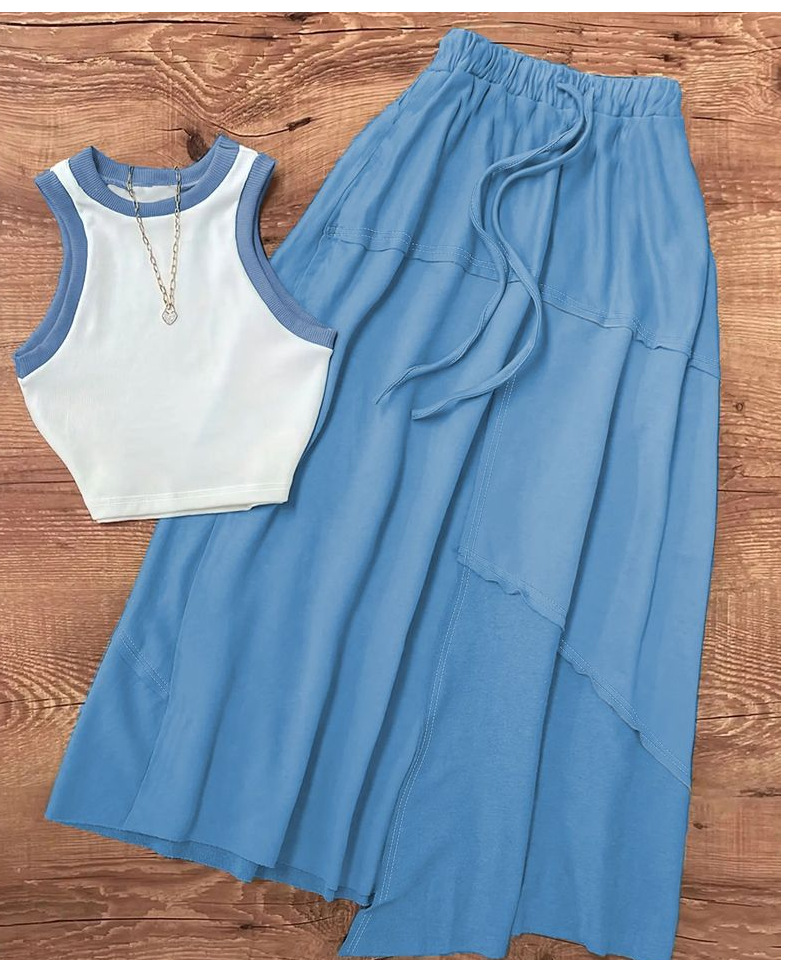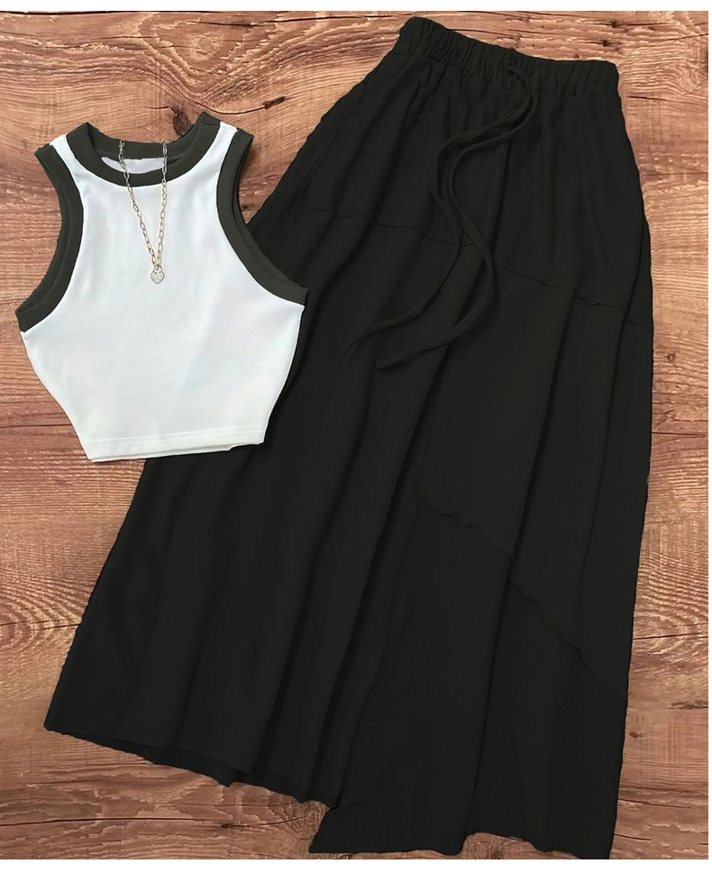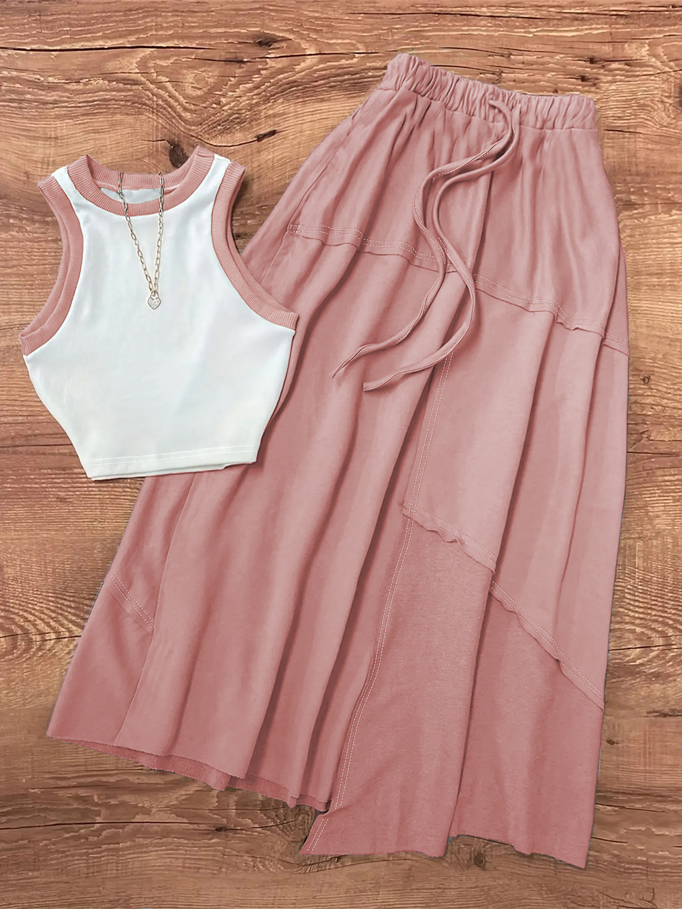 유럽과 미국 여성 의류 2025 새로운 니트 오프 숄더 조끼 투피스 불규칙 스커트 정장 여성