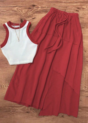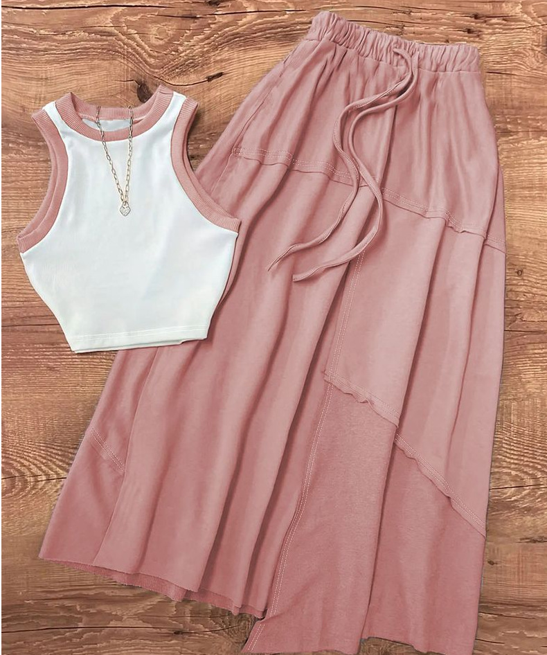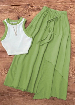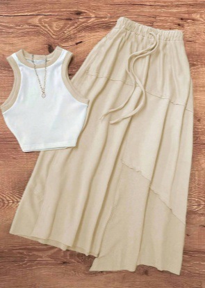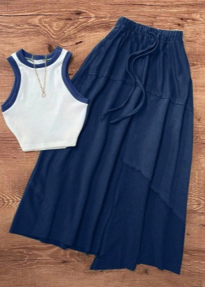 유럽과 미국 여성 의류 2025 새로운 니트 오프 숄더 조끼 투피스 불규칙 스커트 정장 여성스토어 가기