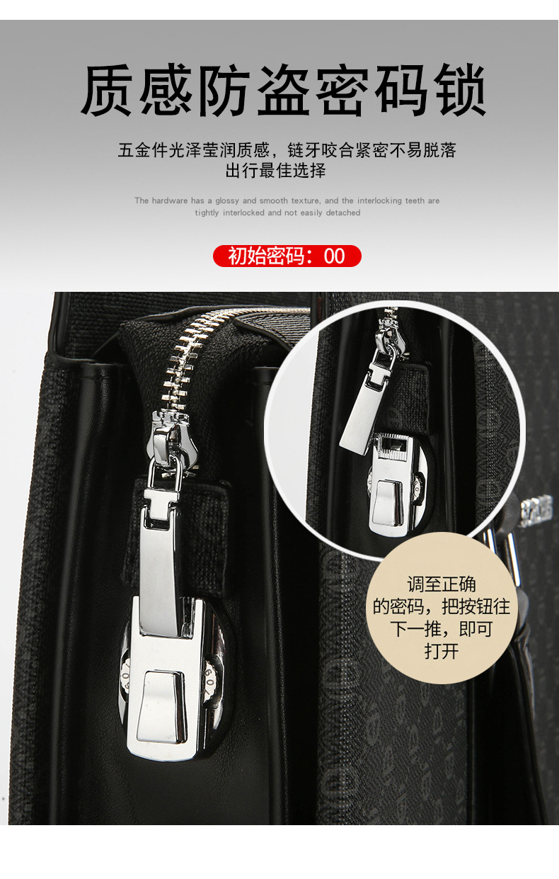 새로운 남성 핸드백 비즈니스 서류 가방 대용량 암호 잠금 도난 방지 남성 가방 어깨 가방 회의 문서 가방