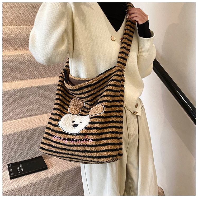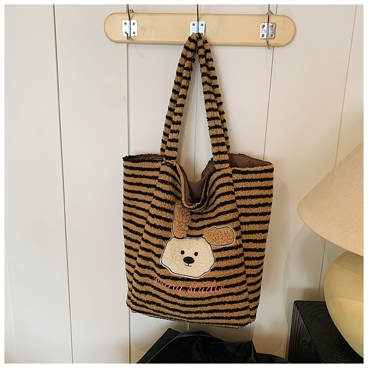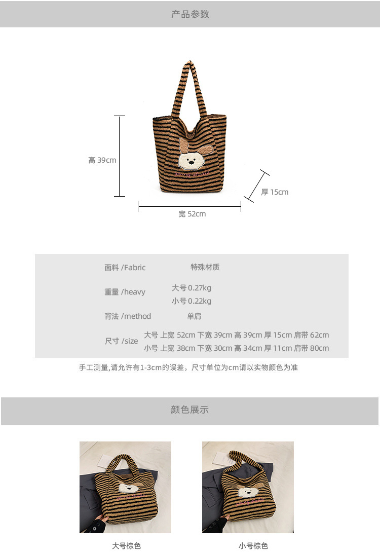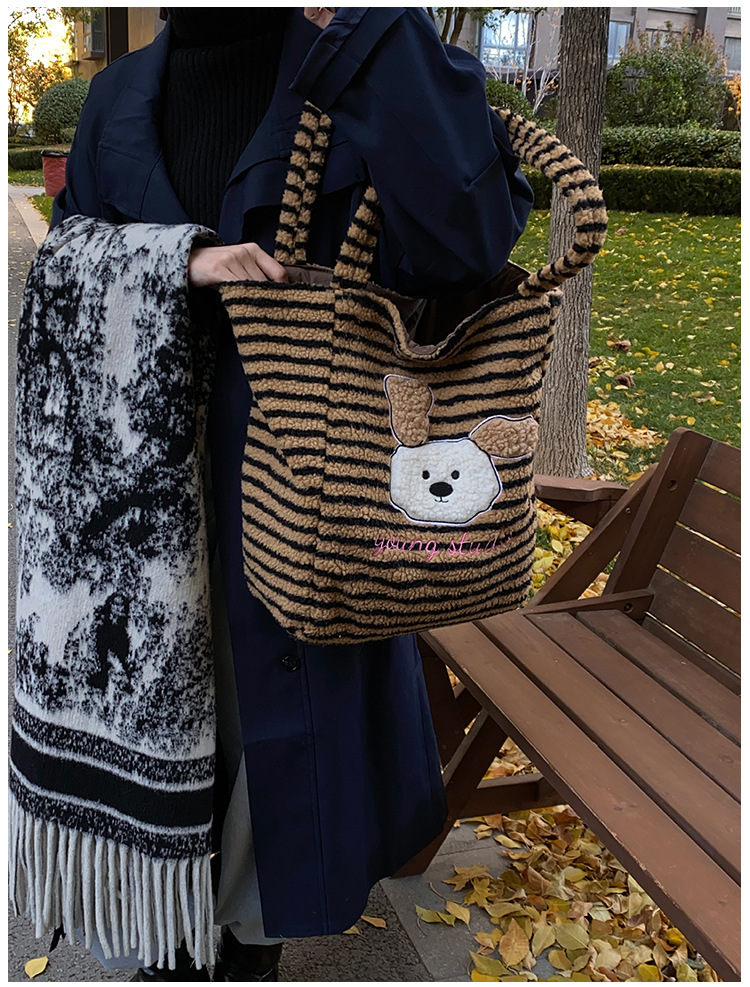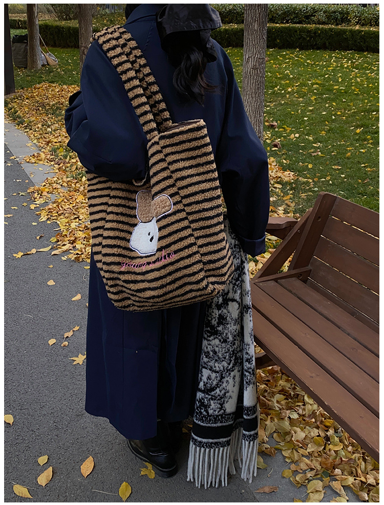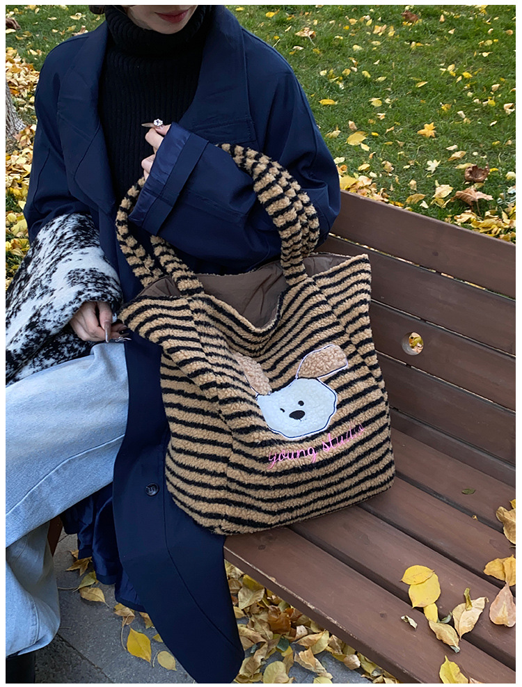 국경 2024 가을과 겨울 새로운 대용량 토트 백 한국식 래디백 숄더 백 플러시 스트라이프 양면 배낭스토어 가기