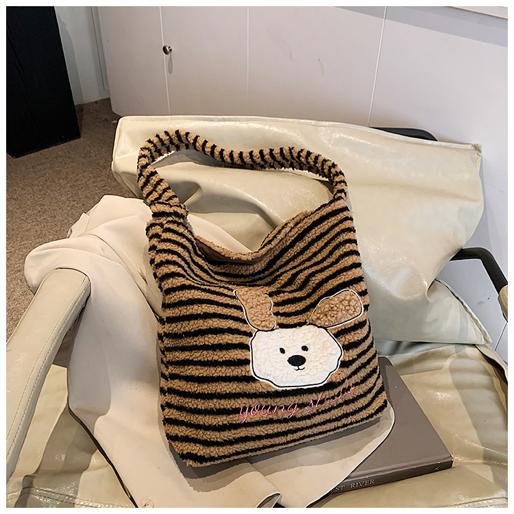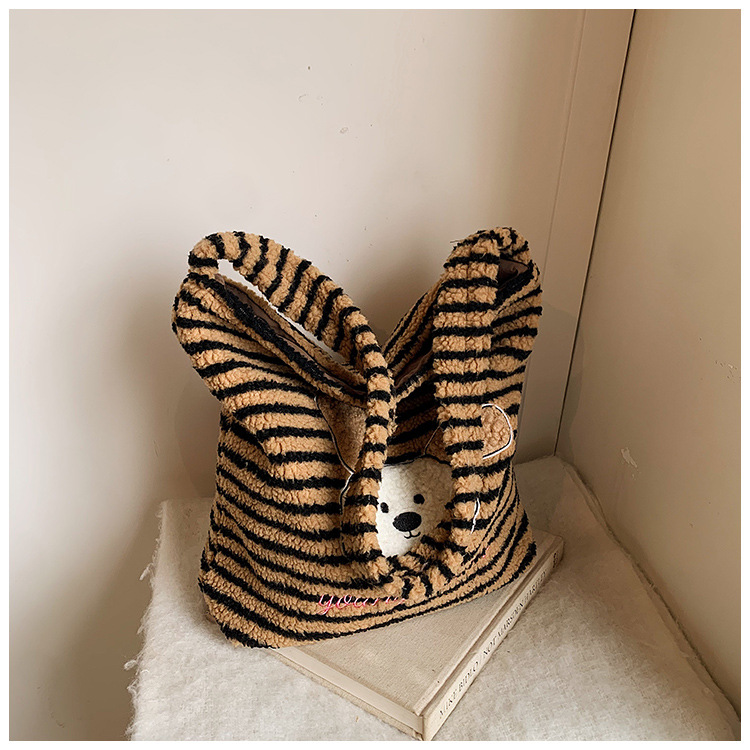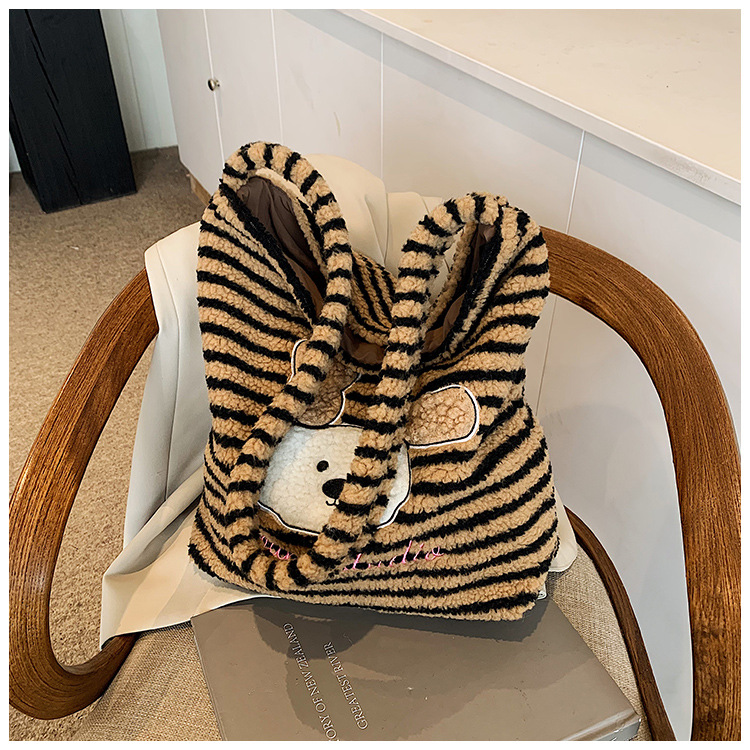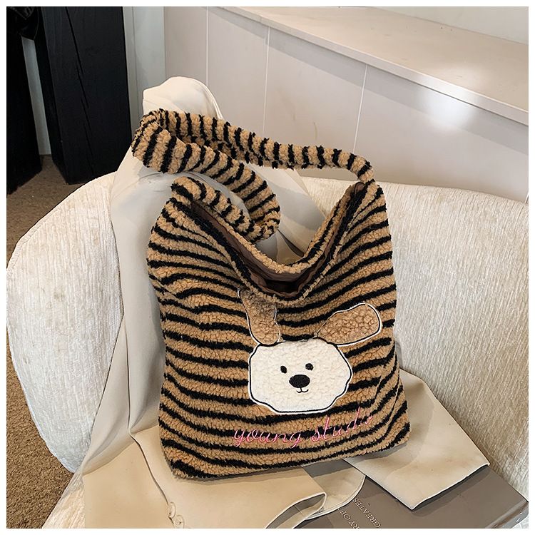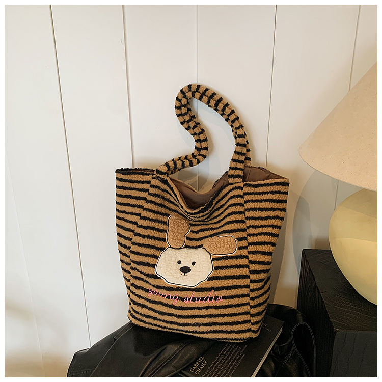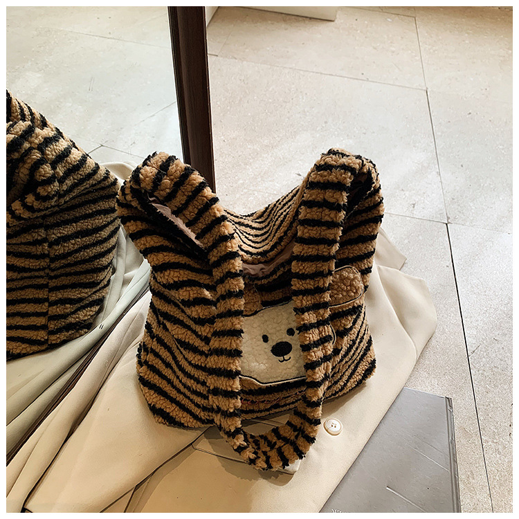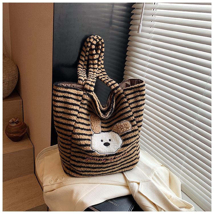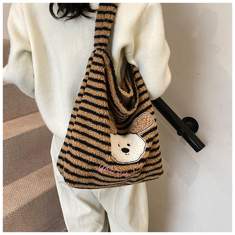 국경 2024 가을과 겨울 새로운 대용량 토트 백 한국식 래디백 숄더 백 플러시 스트라이프 양면 배낭스토어 가기