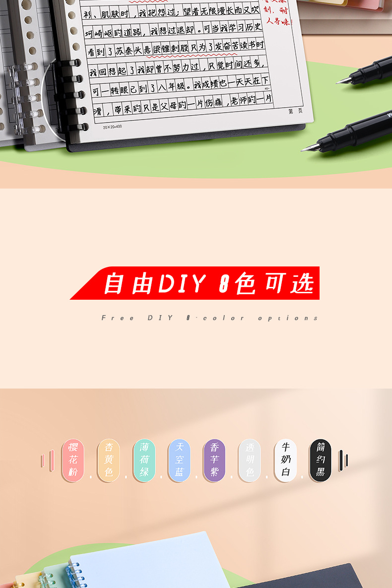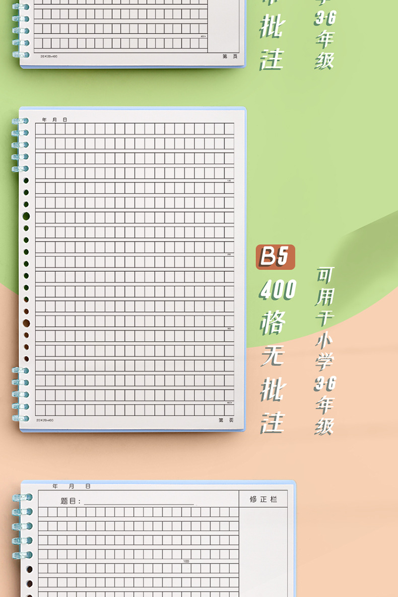 B5 느슨한 잎 노트북 구성 400 사각형 이동식 노트북 16k 중학생 대학 입학 시험 표준 구성스토어 가기