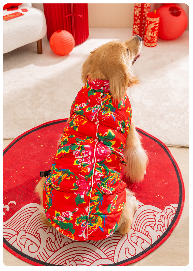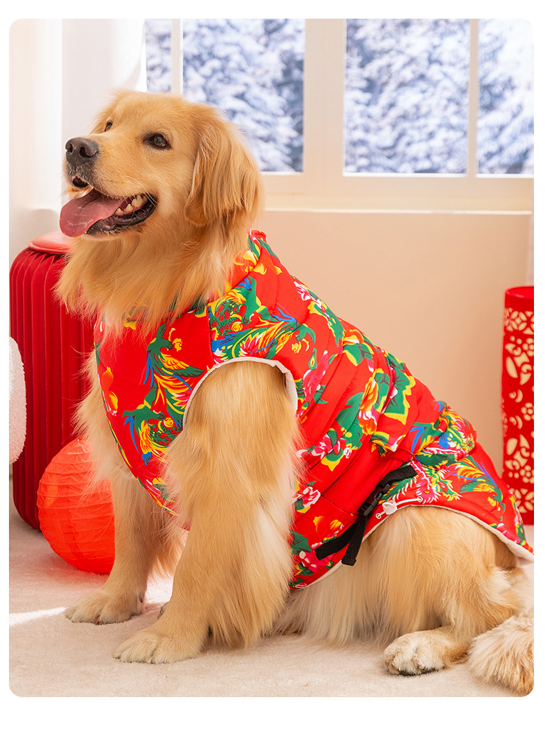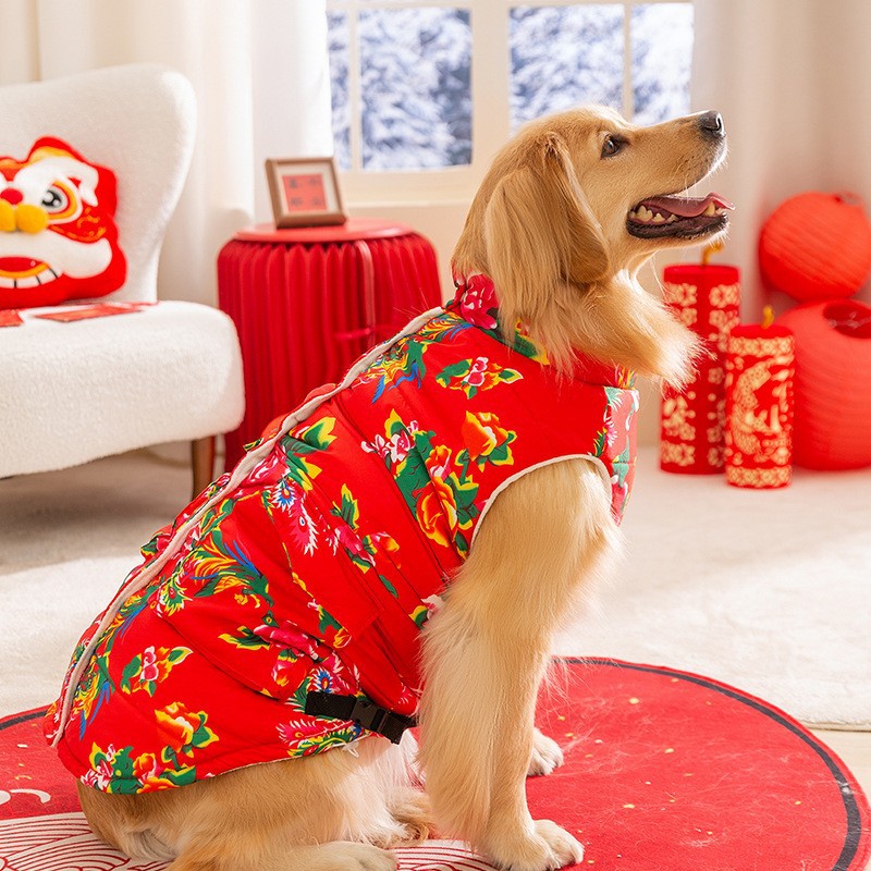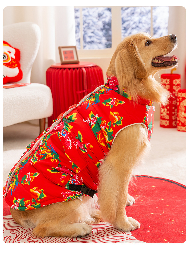 가을과 겨울 개 레트로 스타일 동북 큰 꽃 코트 두꺼운 따뜻한 코튼 코트 미디어와 큰 개 황금 리트리버 애완 동물 개 옷