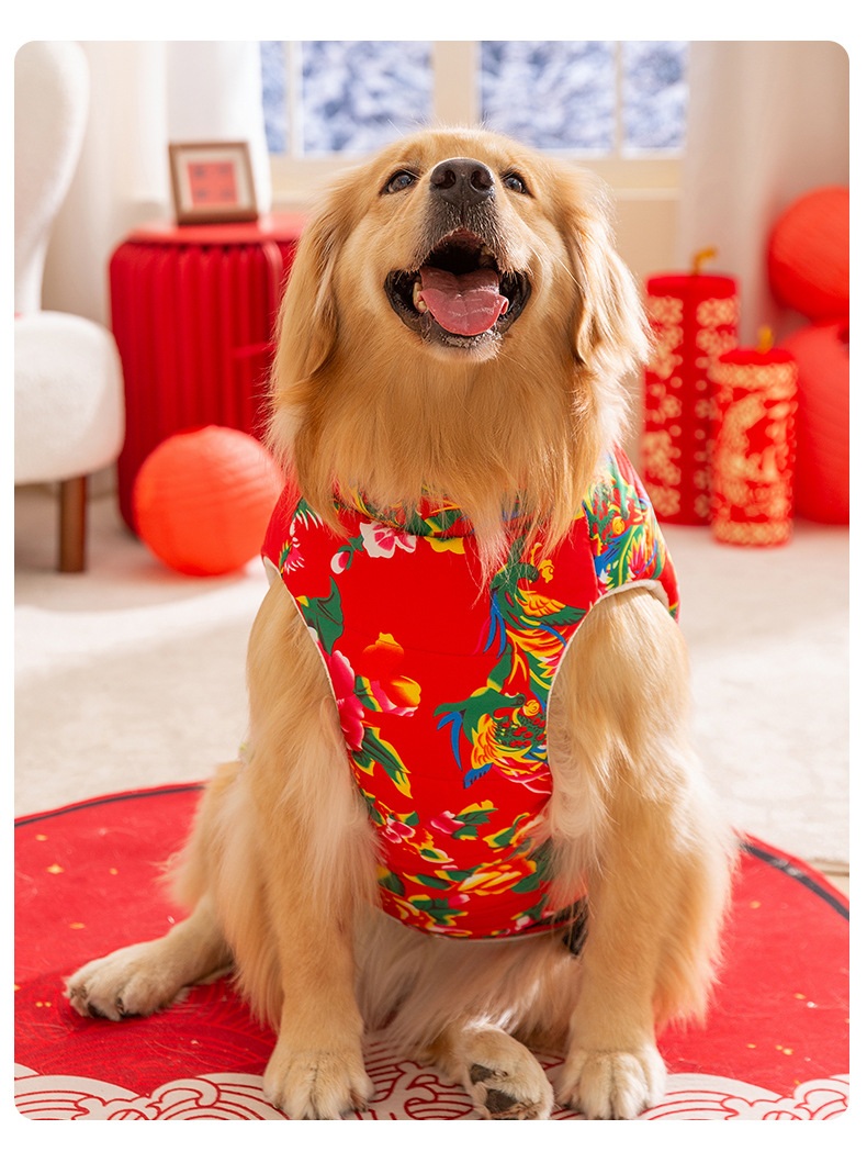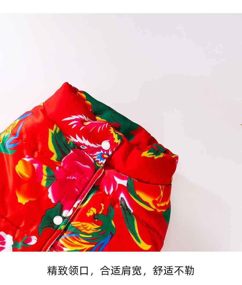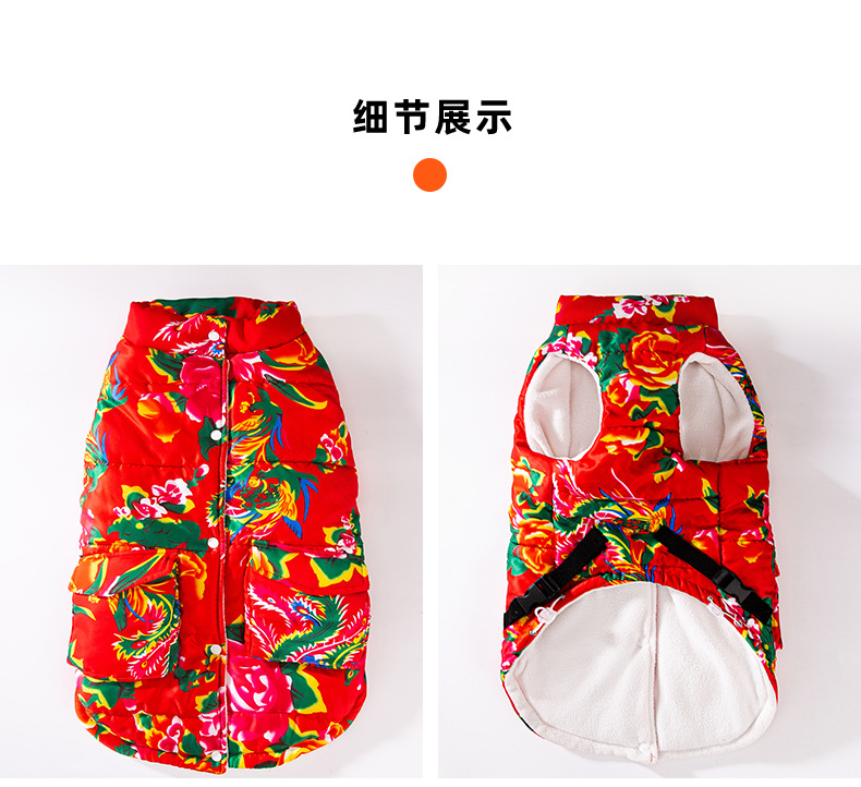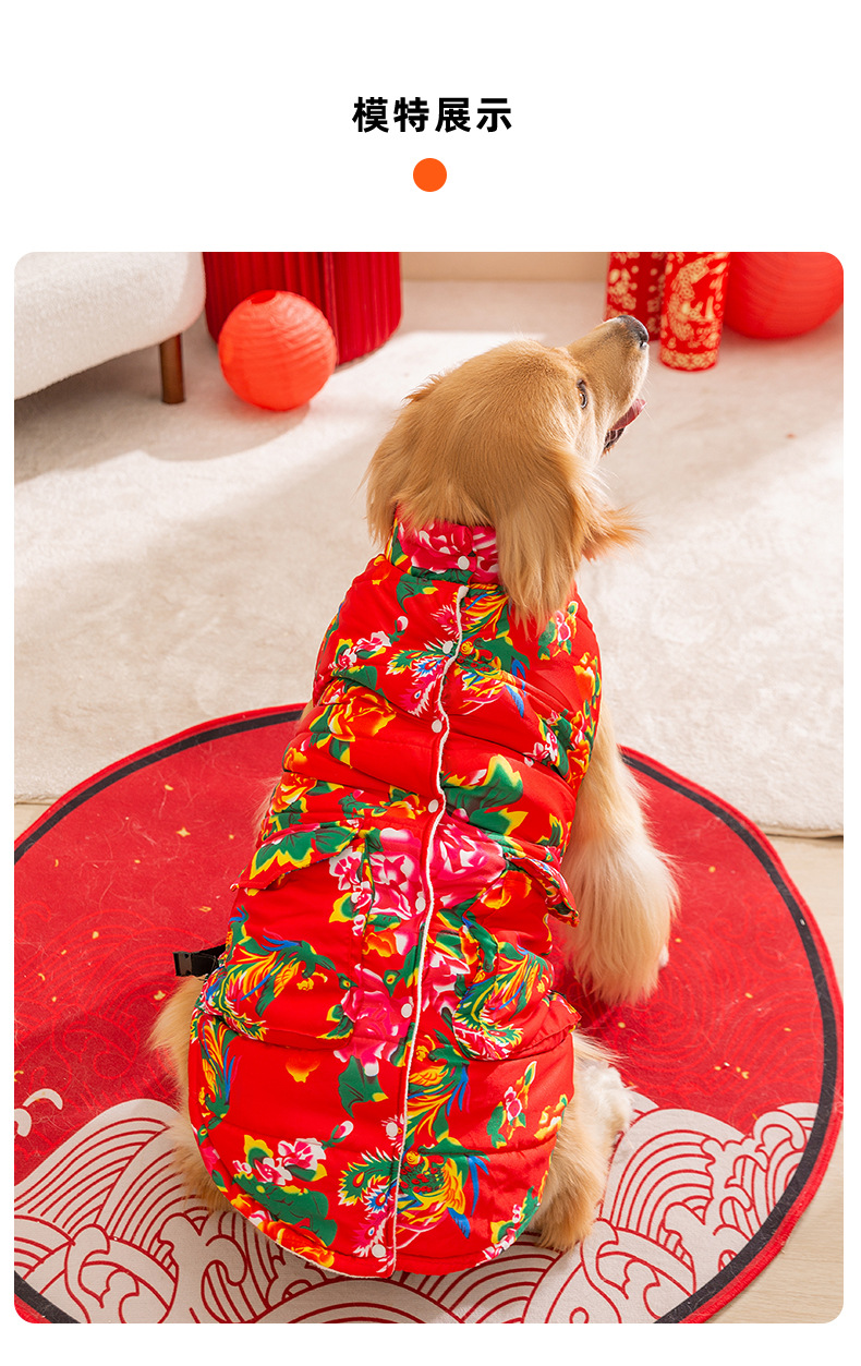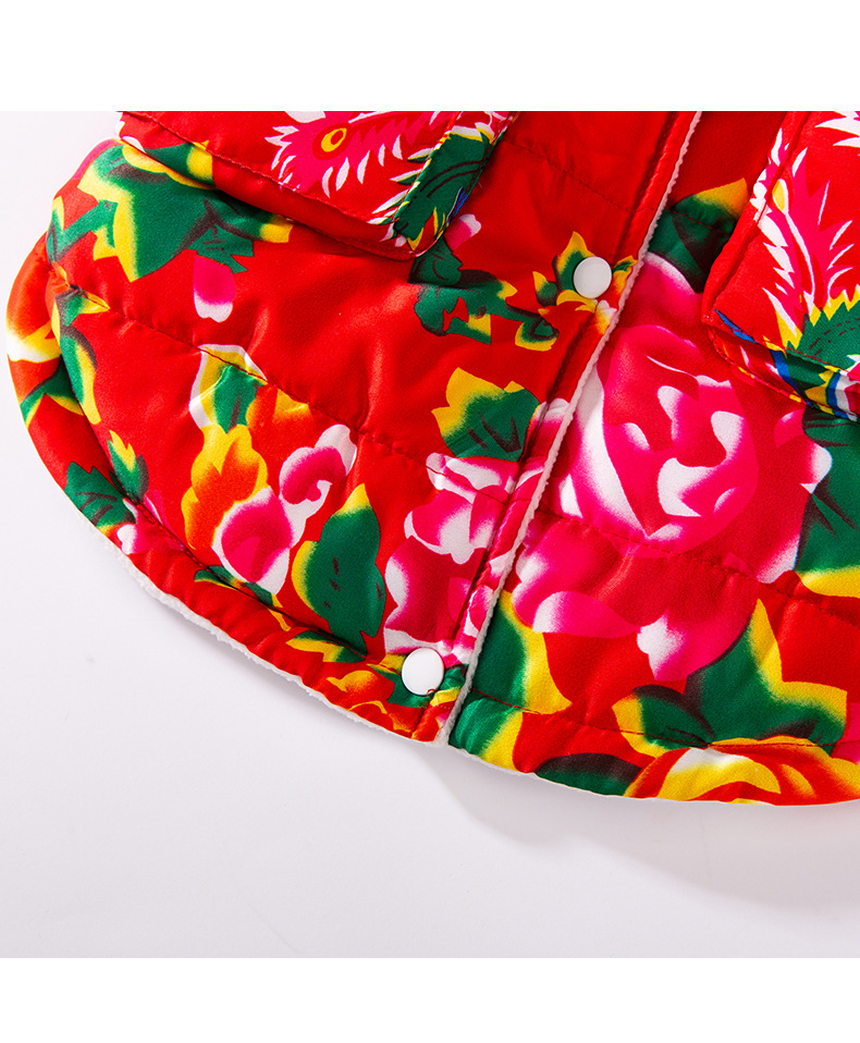 가을과 겨울 개 레트로 스타일 동북 큰 꽃 코트 두꺼운 따뜻한 코튼 코트 미디어와 큰 개 황금 리트리버 애완 동물 개 옷