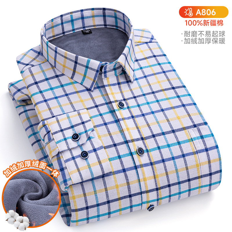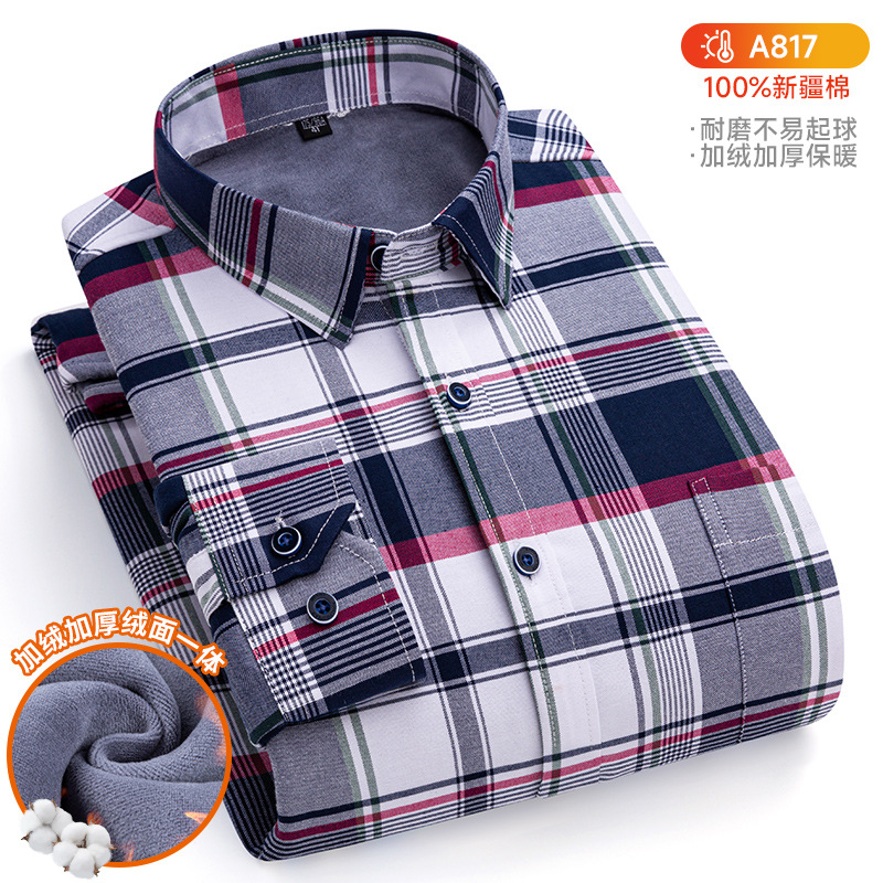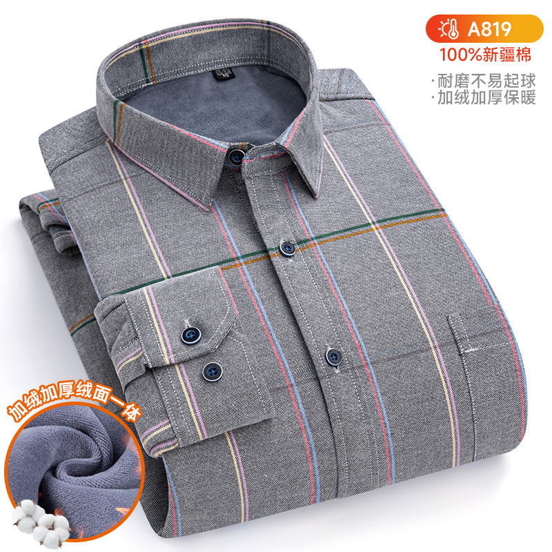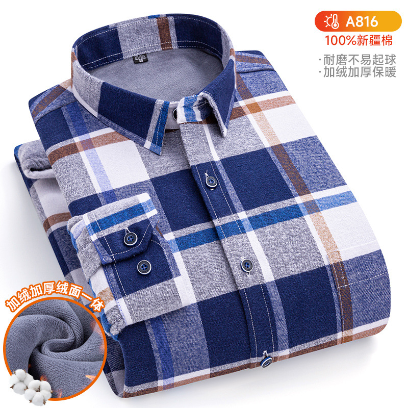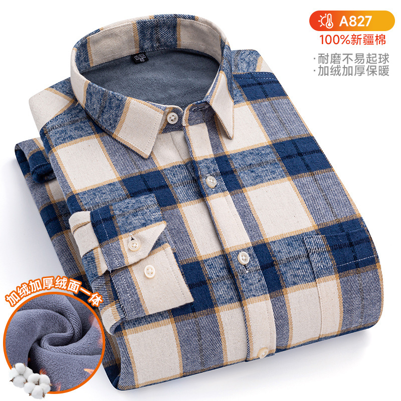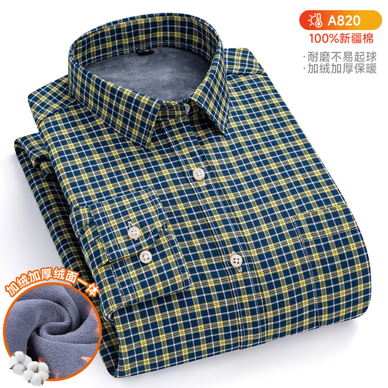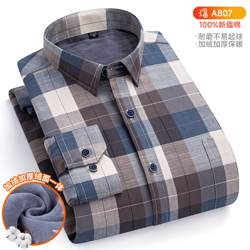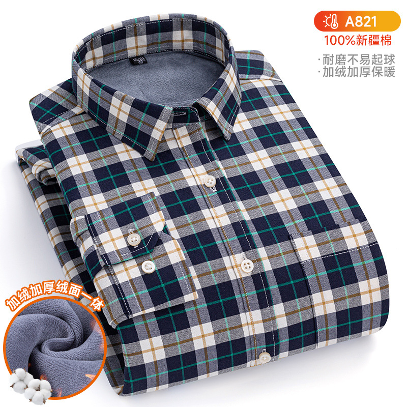 가을과 겨울 새 기모 두꺼운 따뜻한 남성용 셔츠 면 격자 무늬 셔츠 방한 따뜻한 가을 플러스 사이즈 청소년스토어 가기