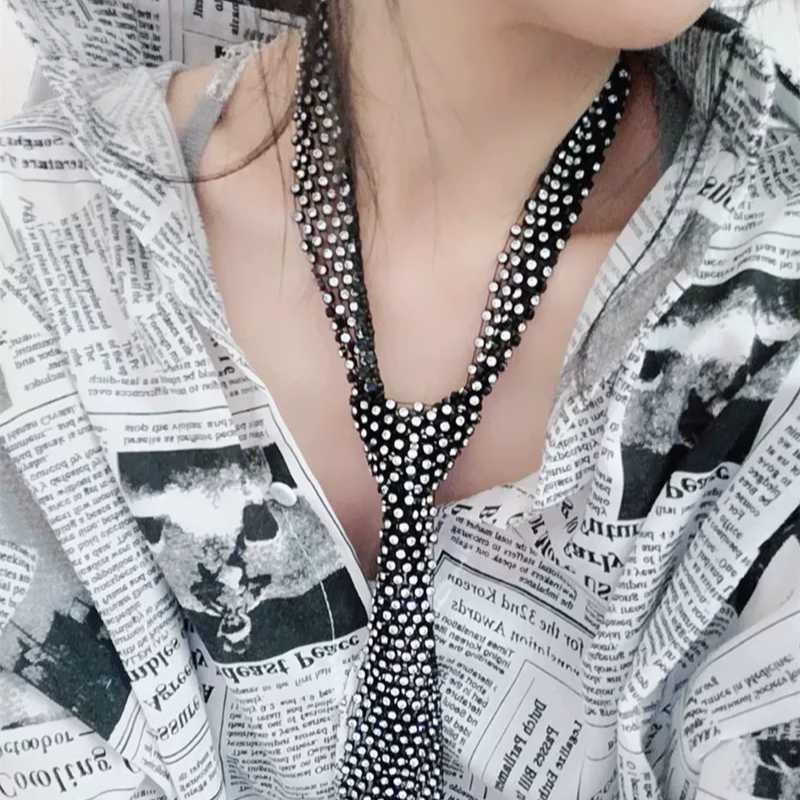 다이아몬드 여성 라인스톤 플래시 다이아몬드 상감 다이아몬드 패션 스타 트렌디 한 장식 쇄골 체인 Sesman 댄스 라인스톤 넥타이와 새로운 스타일 넥타이