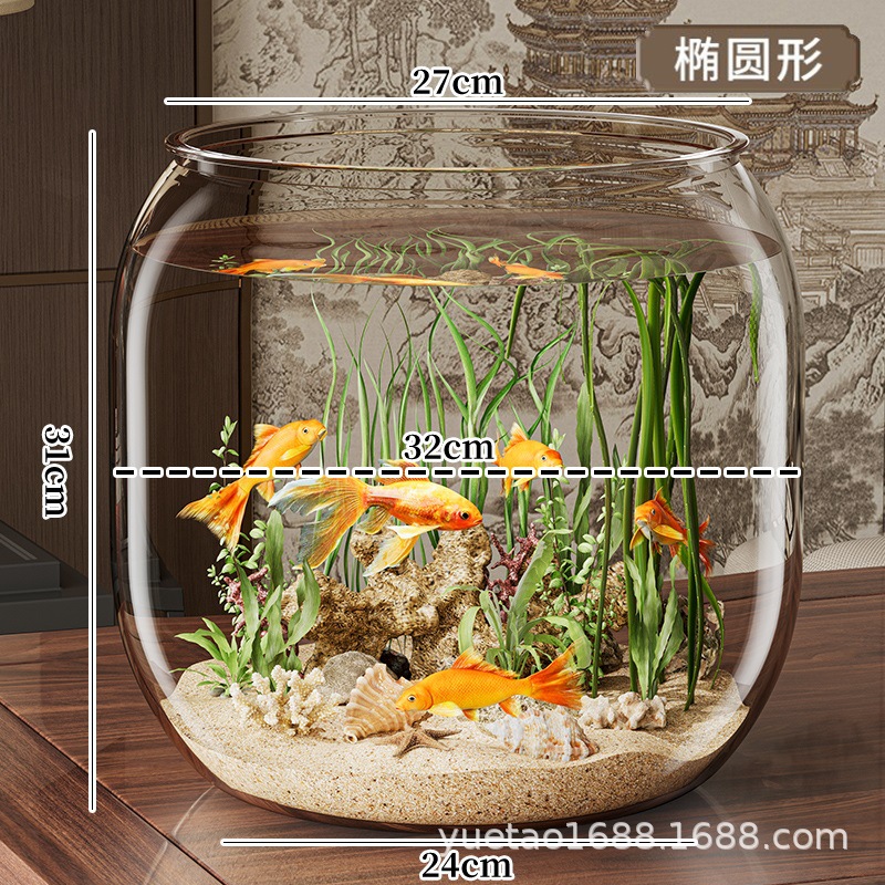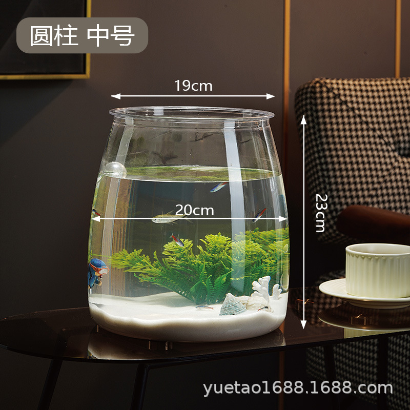 원형 어항 플라스틱 일체형 투명 유리 모조 소재 내구성 거실 소형 탁상 생태 수족관스토어 가기
