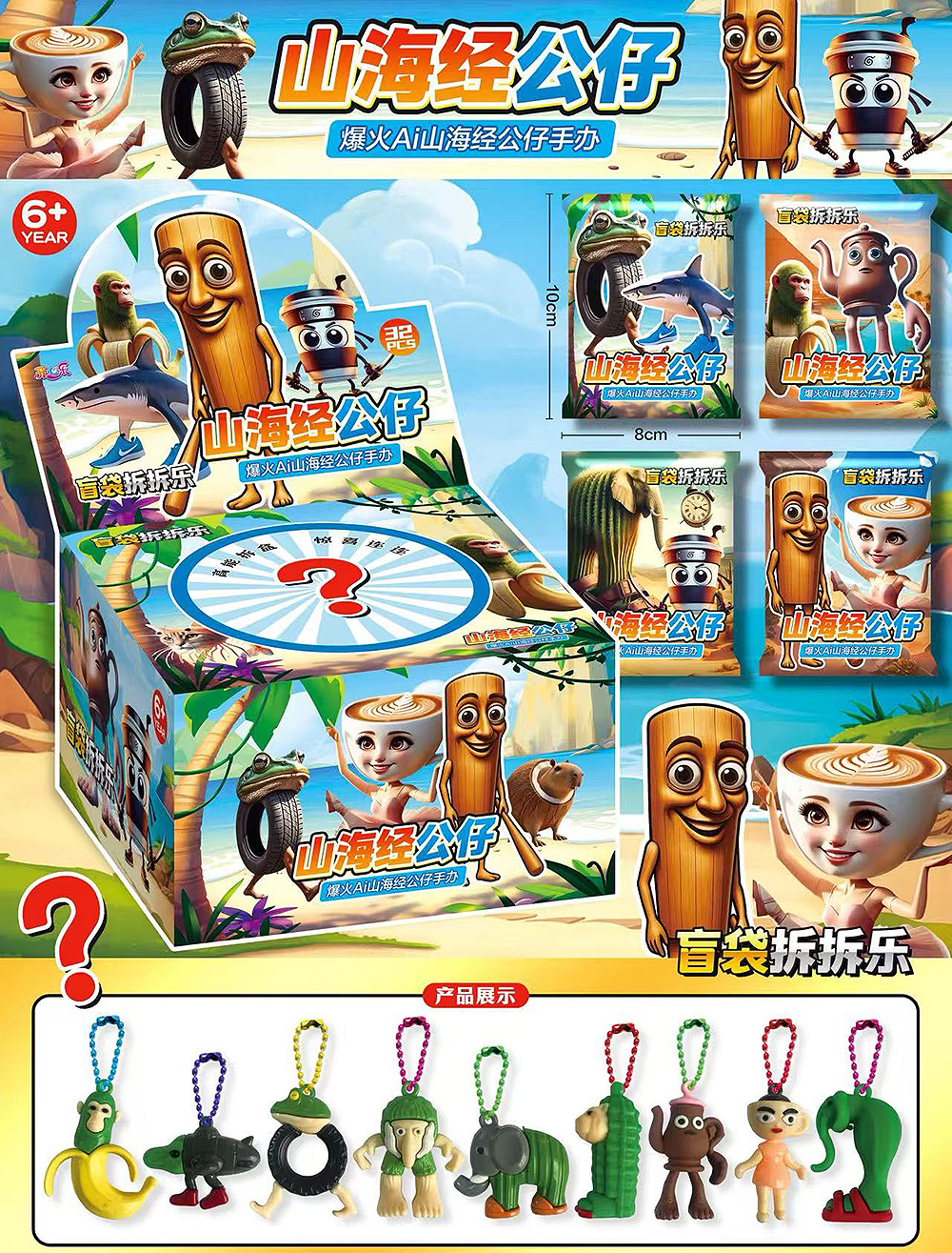 • AI Shan Hai Jing 아크릴 펜던트 블라인드 백 - 전체 상자에 32개 백