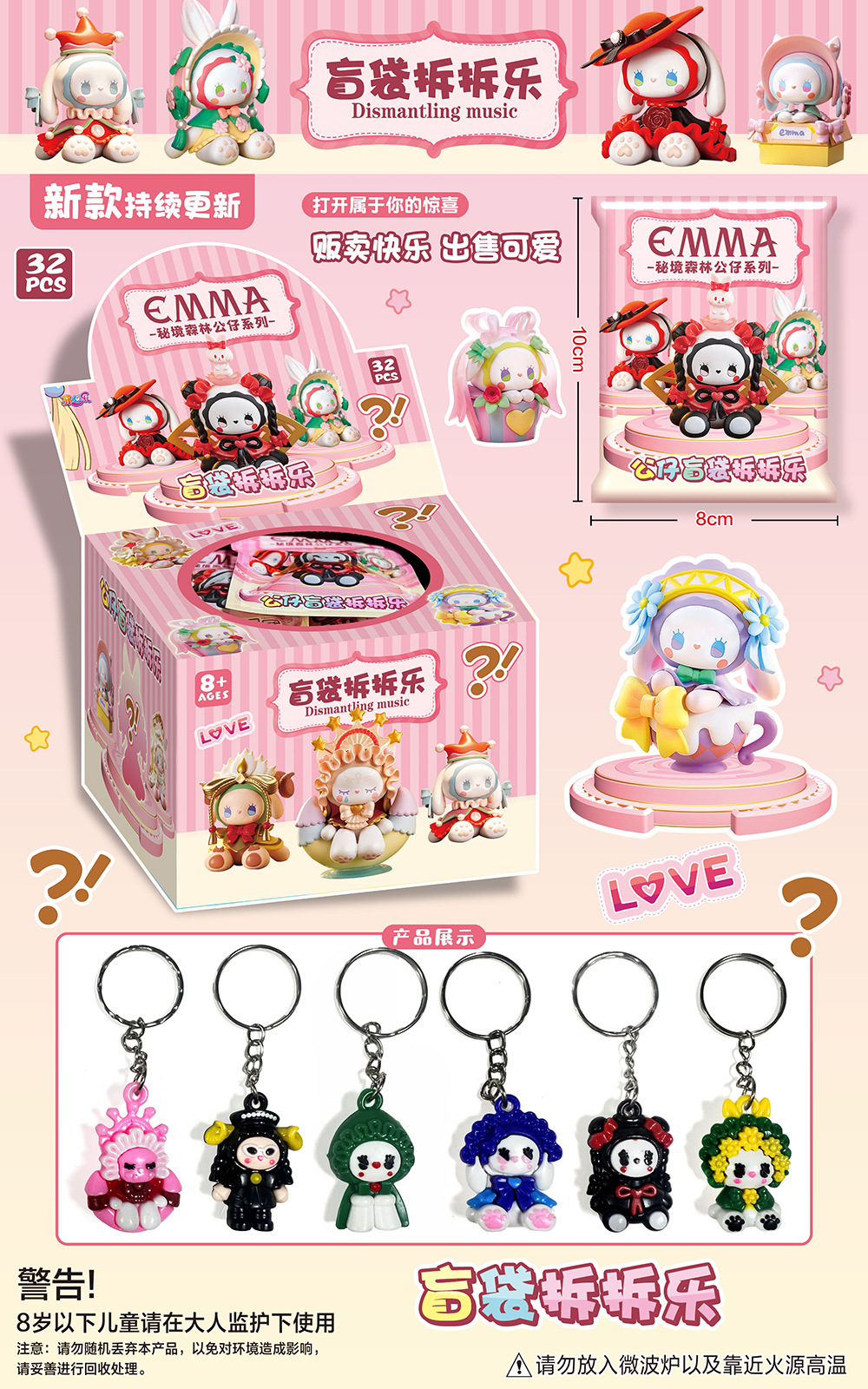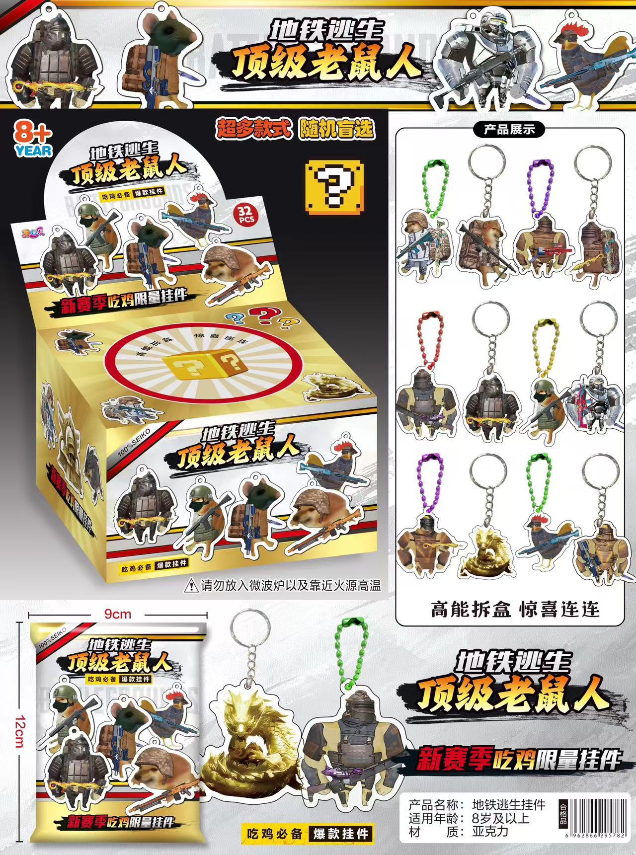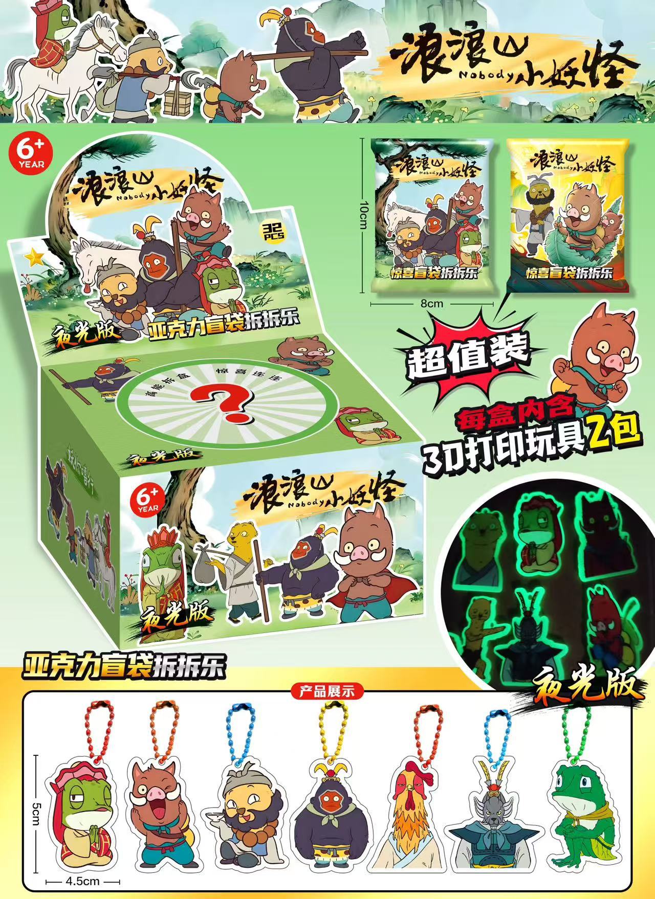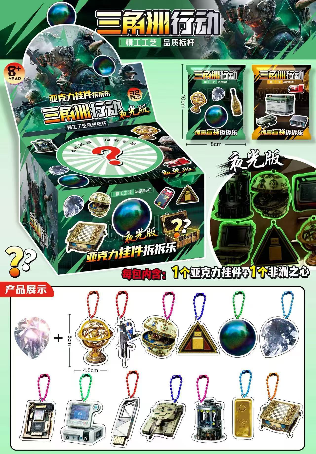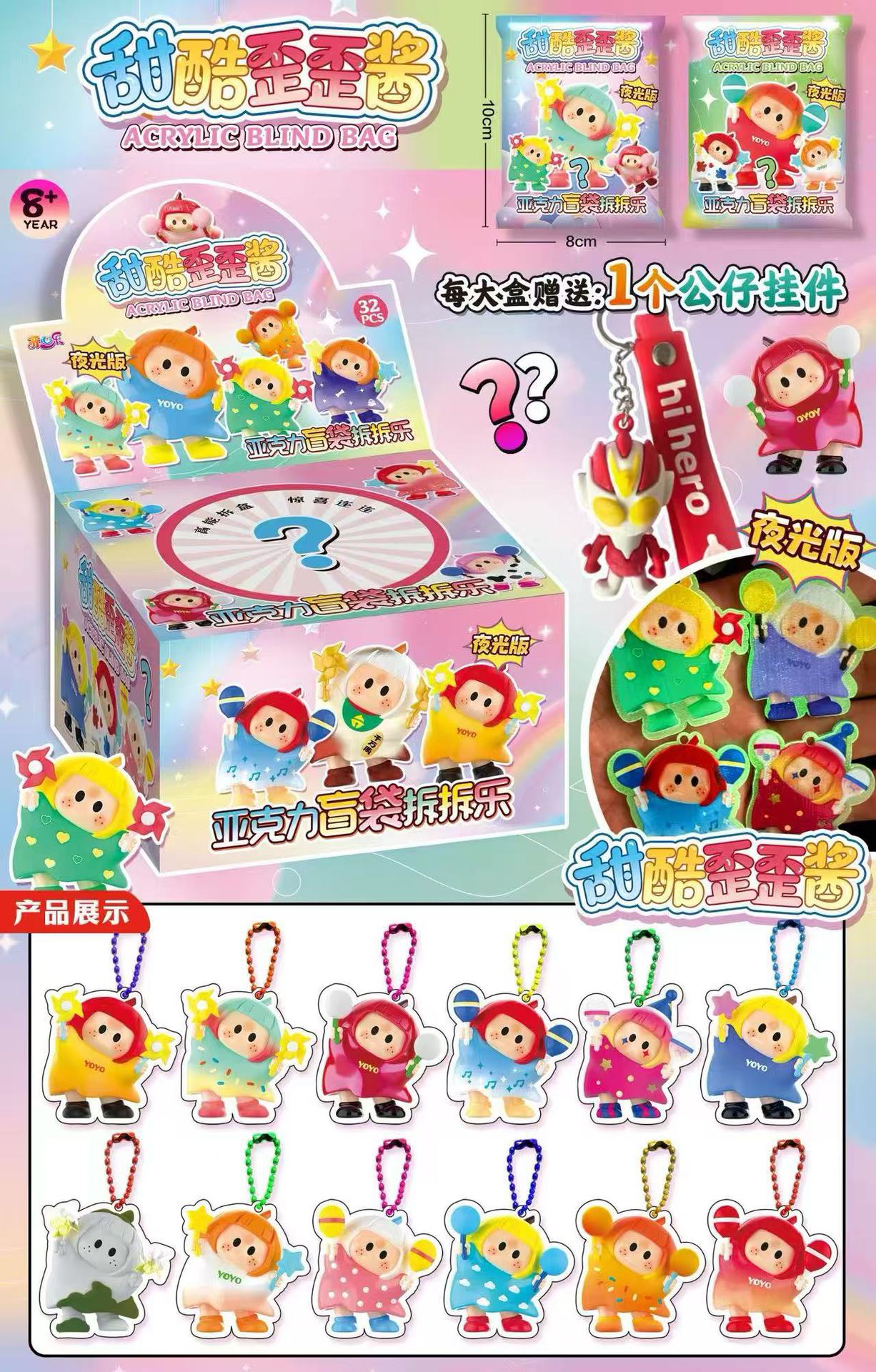 • 중형 5인용 야광 아크릴 펜던트 블라인드 백 분해 재미 - 전체 상자에 32개의 가방
