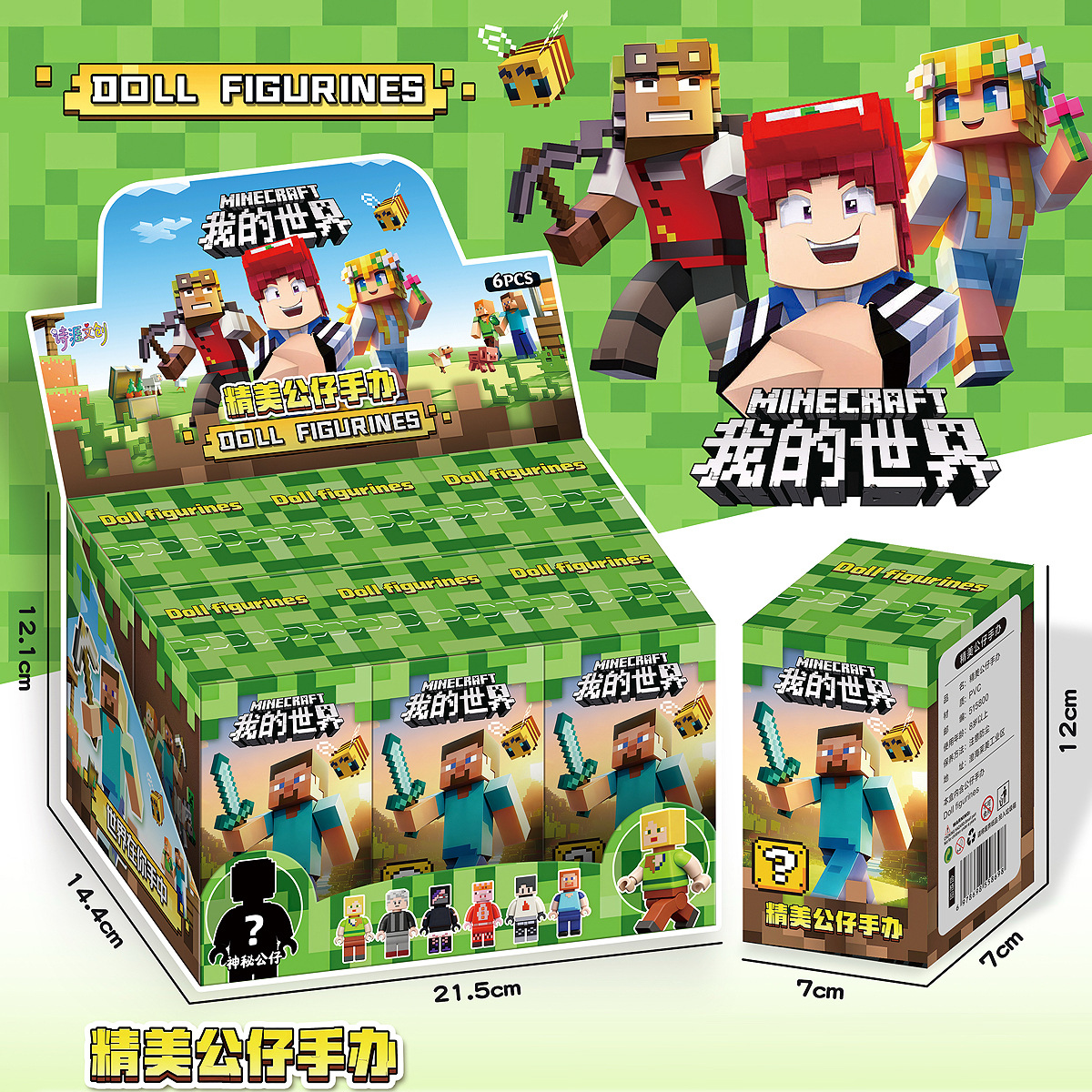 • 대형 마인크래프트 피규어 장식품 블라인드 박스 - 큰 박스 1개, 작은 박스 6개