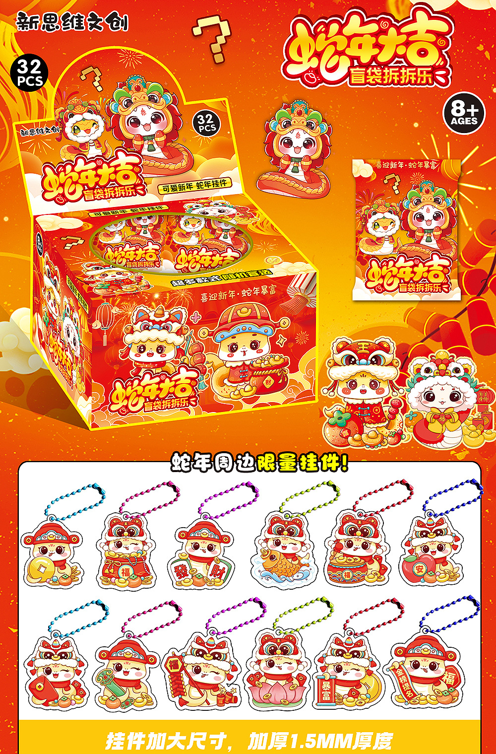 • 뱀의 해에 행운을 니다 펜던트 블라인드 백 분해 재미 - 전체 상자에 32개의 가방