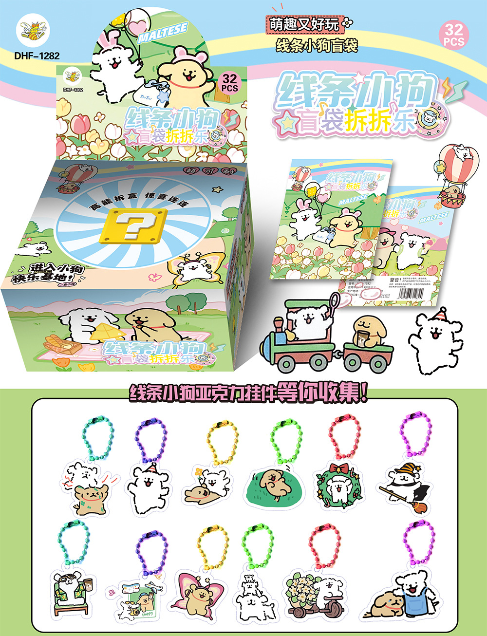 • 중간 라인 개 아크릴 펜던트 블라인드 백 분해 재미 - 전체 상자에 32개의 가방