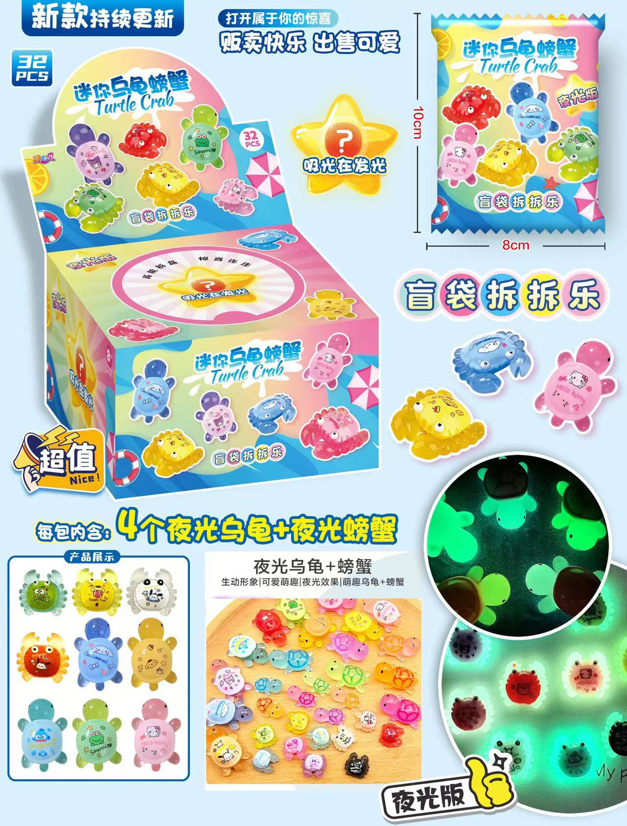 • 빛나는 미니 거북이와 게 블라인드 백 분해 재미 - 전체 상자에 32개의 가방이 들어 있습니다.