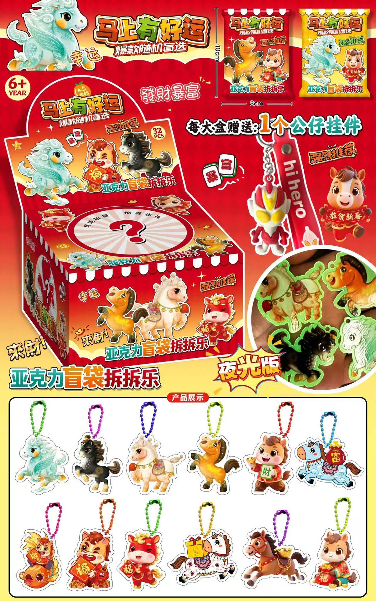 • Xiangruifu 말 인형 펜던트 블라인드 박스 - 전체 상자는 24개의 작은 상자입니다.
