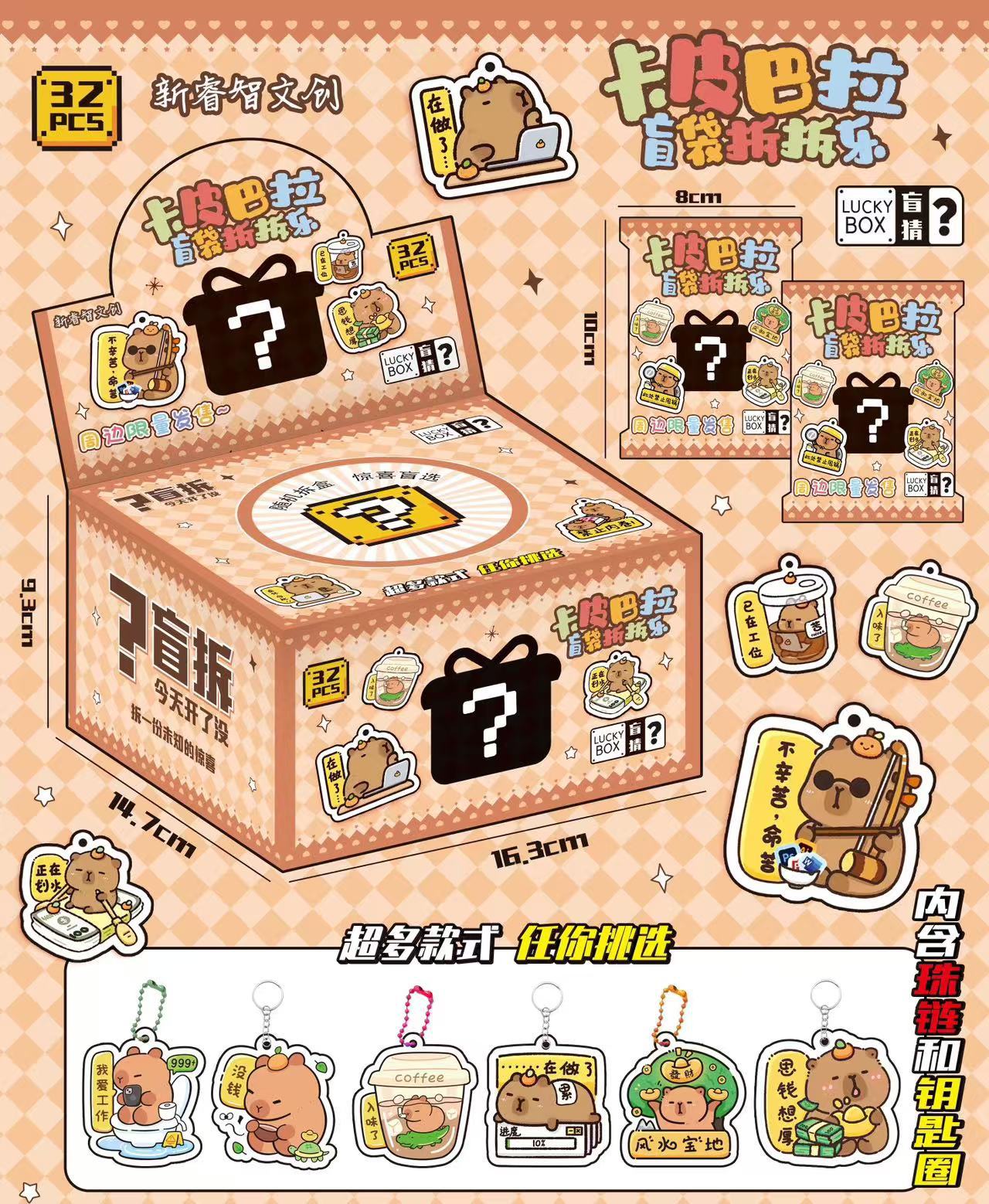 • 카피바라 아크릴 펜던트 블라인드 백 분해 재미 - 전체 상자에 32개의 가방이 들어있습니다.