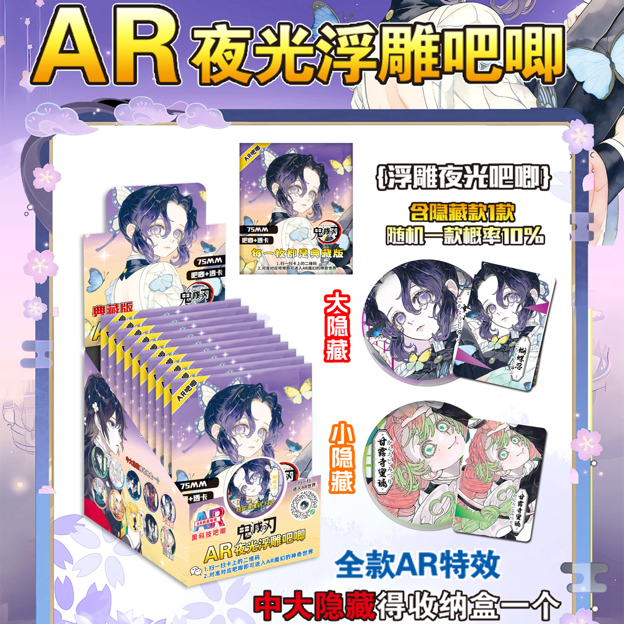 • 귀멸의 칼날 AR 야광 엠보싱 배지 - 2603 - 10개입 한 상자