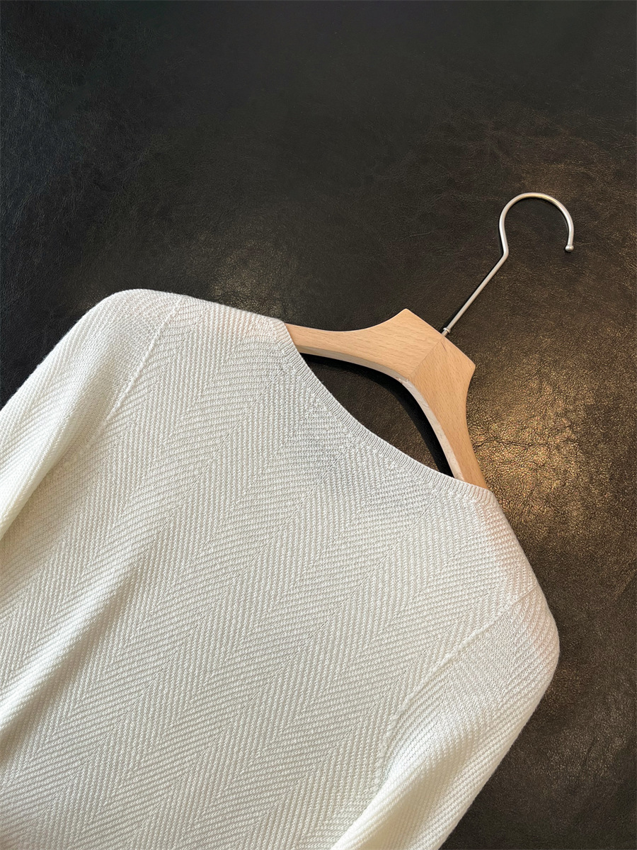 经过反复调整的一字领型,造型精巧流畅,舒适贴合脖颈
