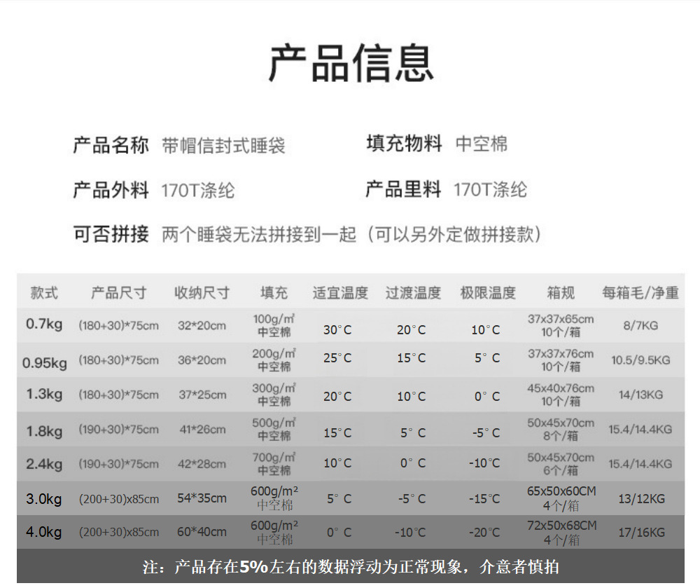 • 【2.4KG/-10~10℃】:(190+30)*75cm