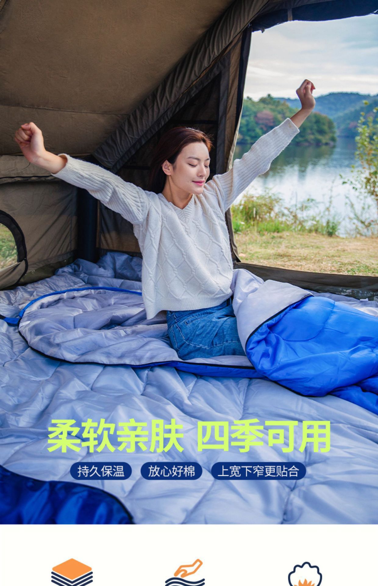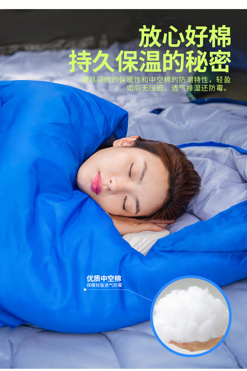 야외 캠핑 봉투 침낭 성인 사계절 여행 침낭 두꺼운 캠핑 중공 면 캠핑 담요 겨울 침낭스토어 가기