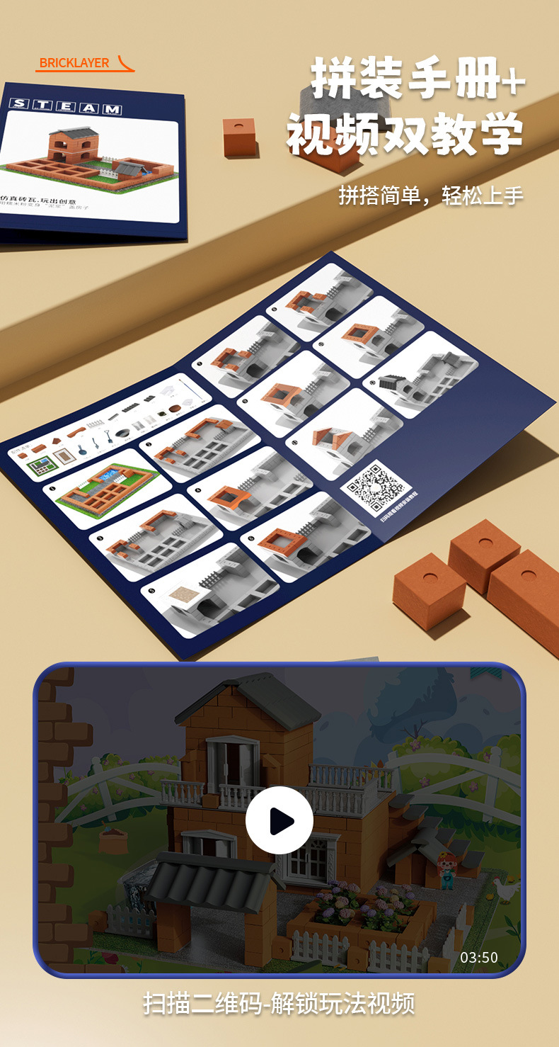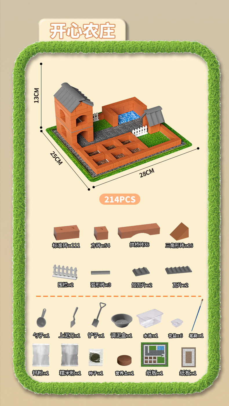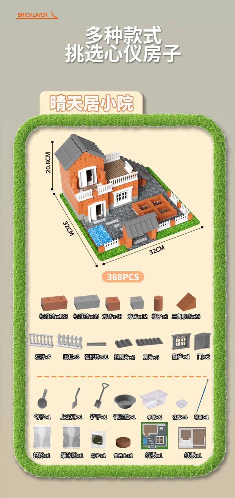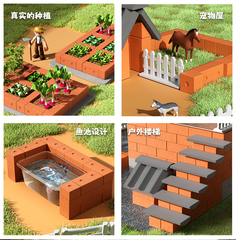 어린이 DIY 수제 오두막 진짜 벽돌 미니 메이슨 건물 집 벽 건물 장난감 빌라 빌딩 블록 조립 남성