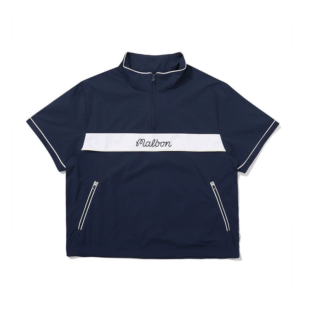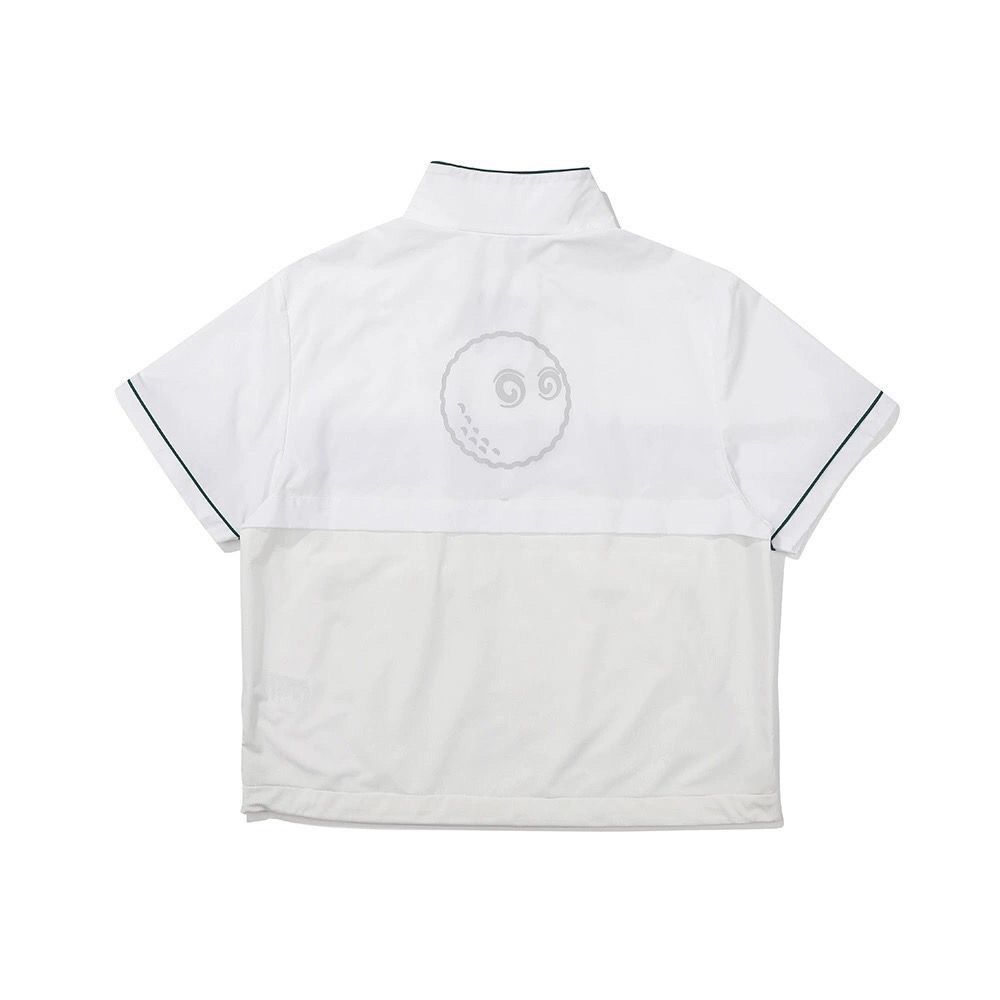 24 개의 새로운 한국 골프 세트 골프 짧은 소매 컬러 매칭 하프 지퍼 스탠드 칼라 풀오버 탑
