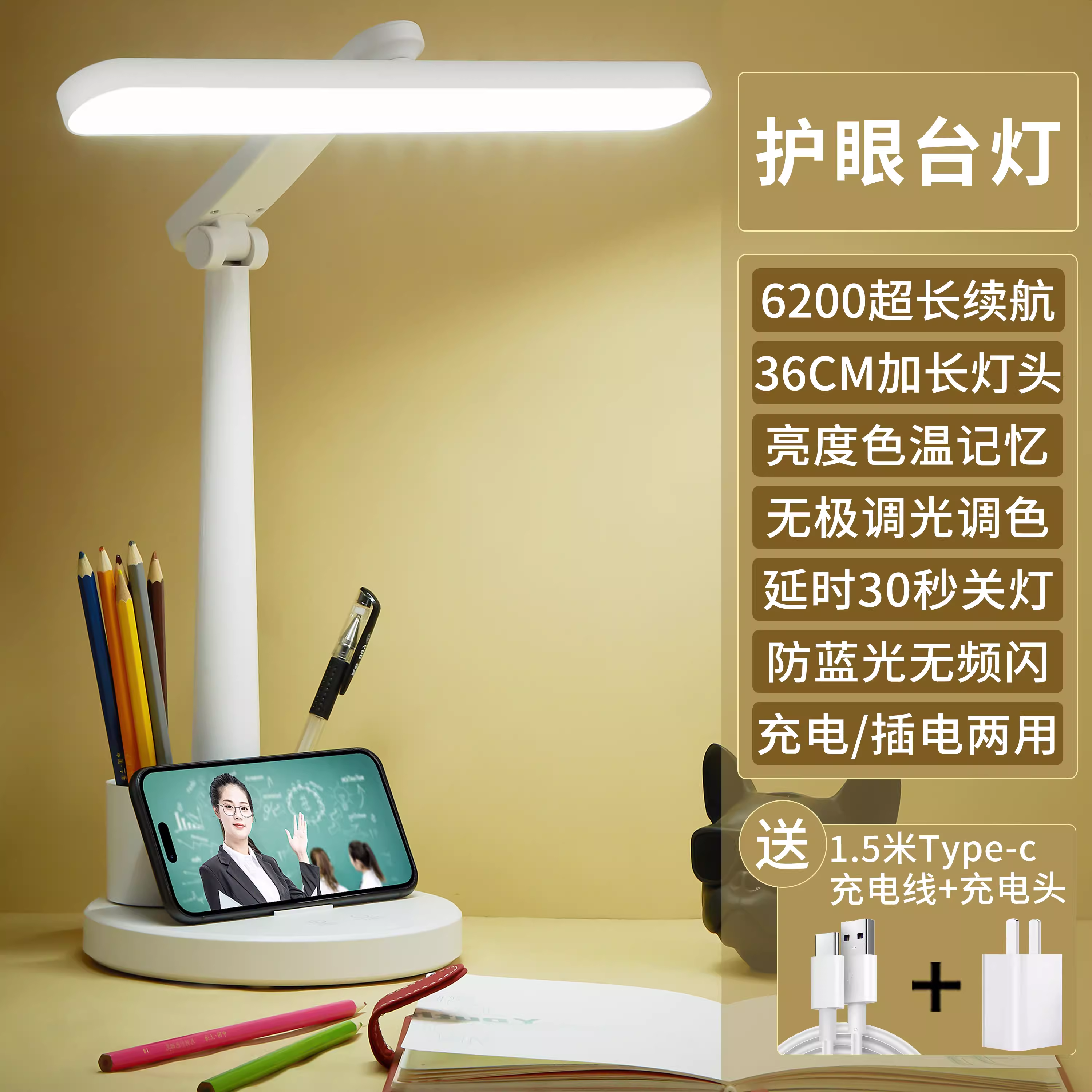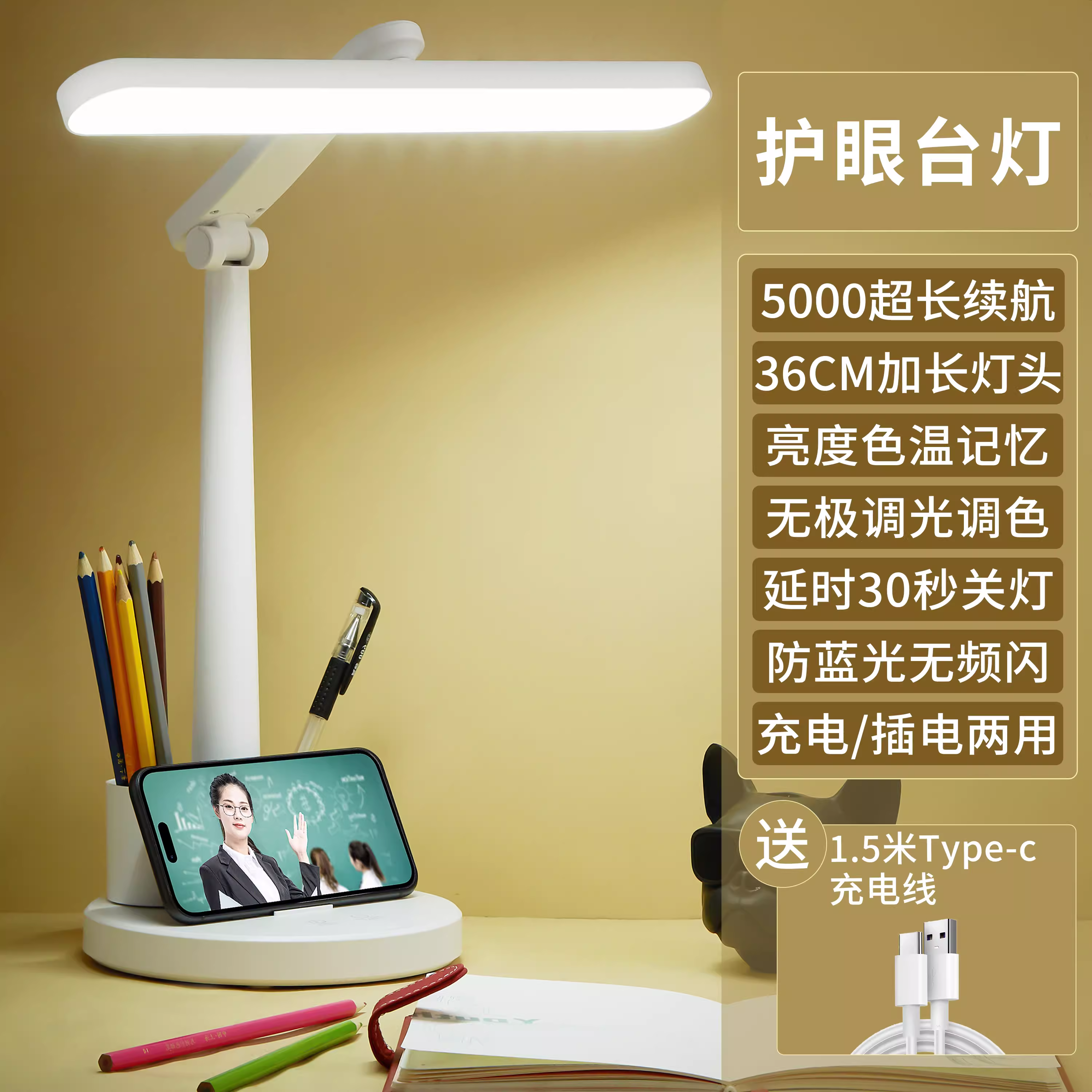 어린이 근시 예방 학습 눈 보호 책상 램프 대학생 기숙사 숙제 삽입 충전식 책상 학습 독서 램프
