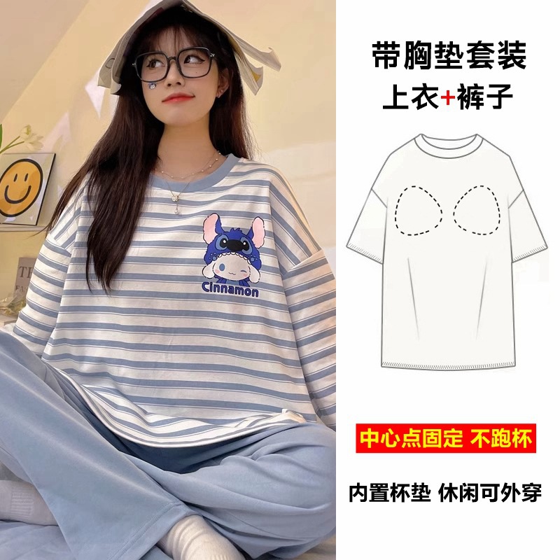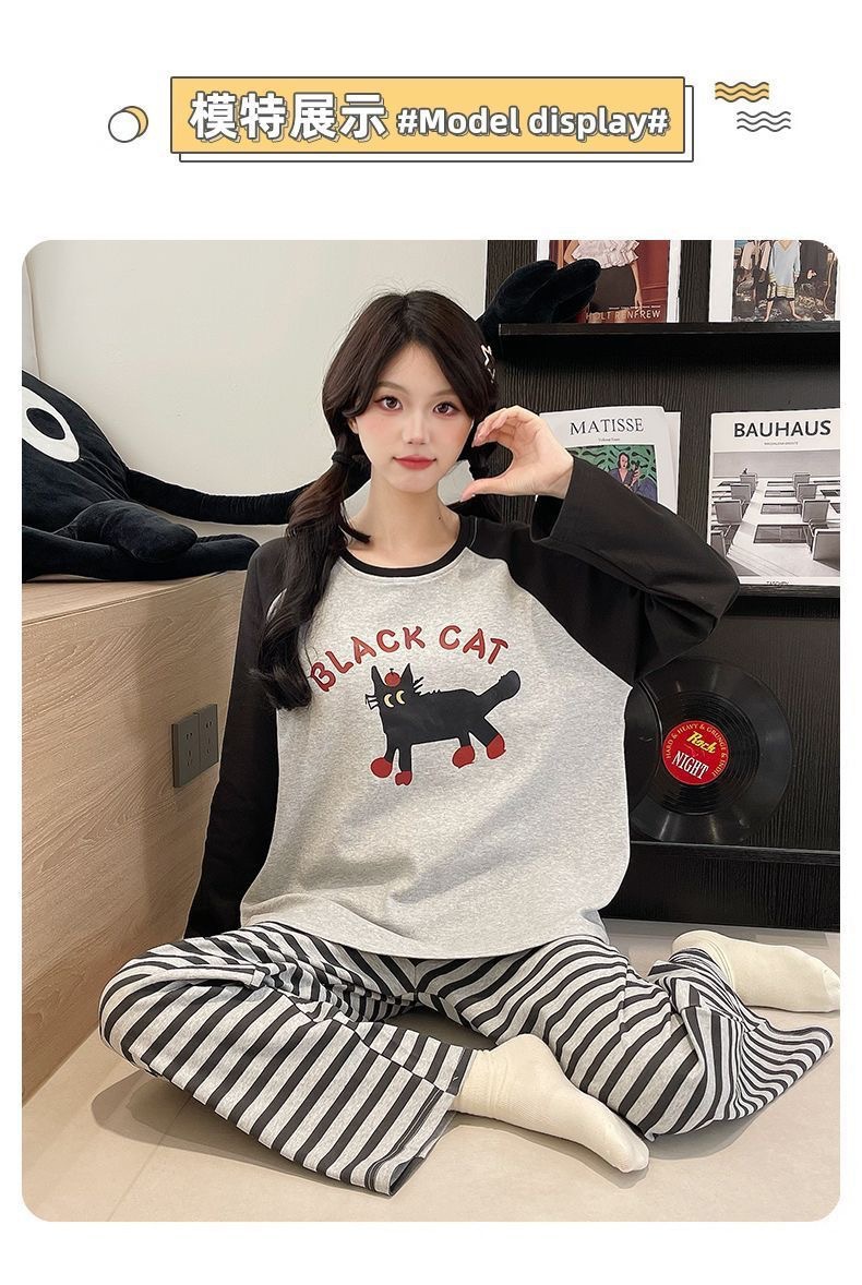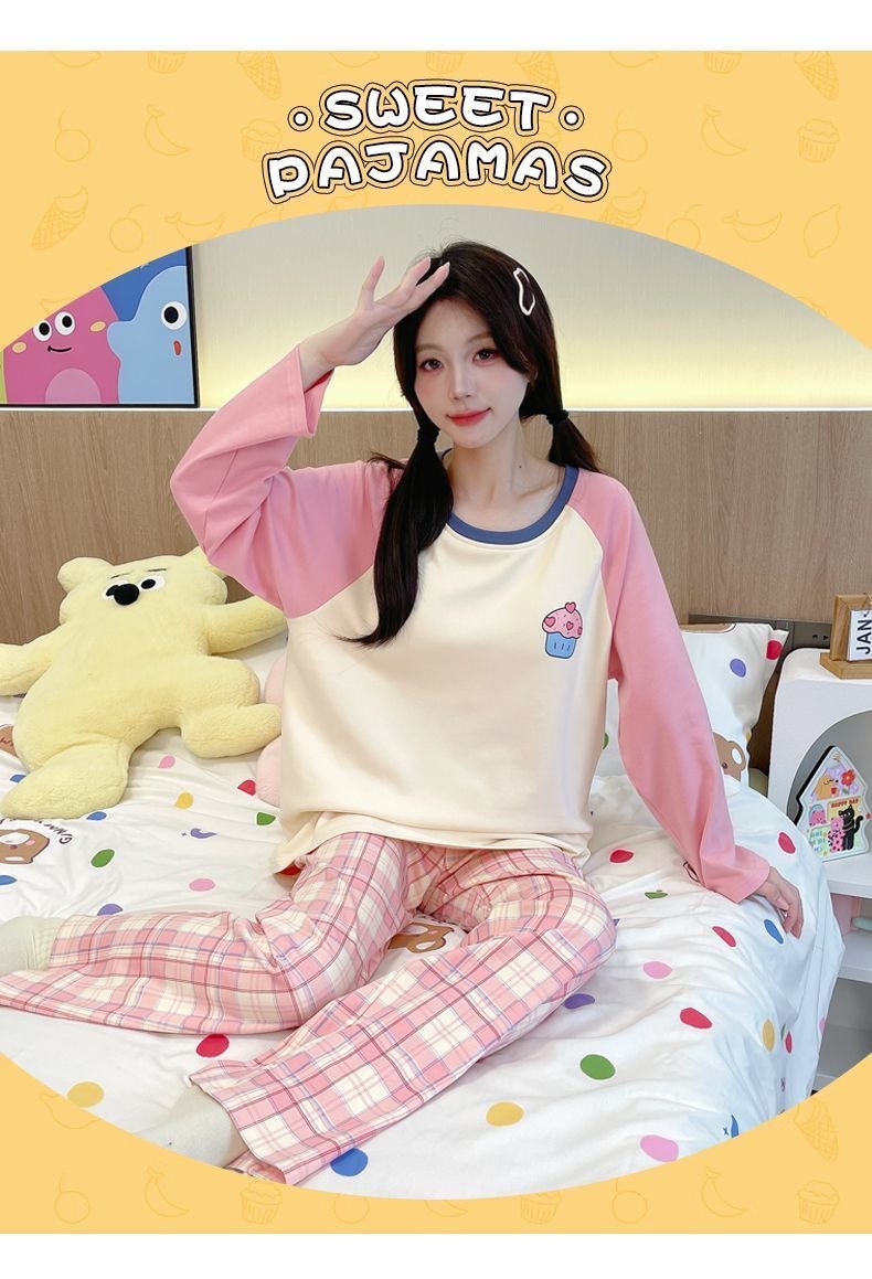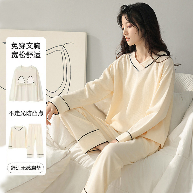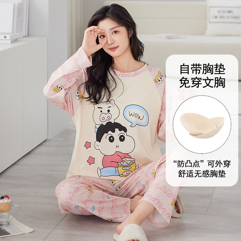 잠옷 여성의 가을 모조 면 벨트 가슴 패드 통합 긴 소매 세트 봄과 가을 캐주얼 여성 플러스 사이즈 홈 옷스토어 가기
