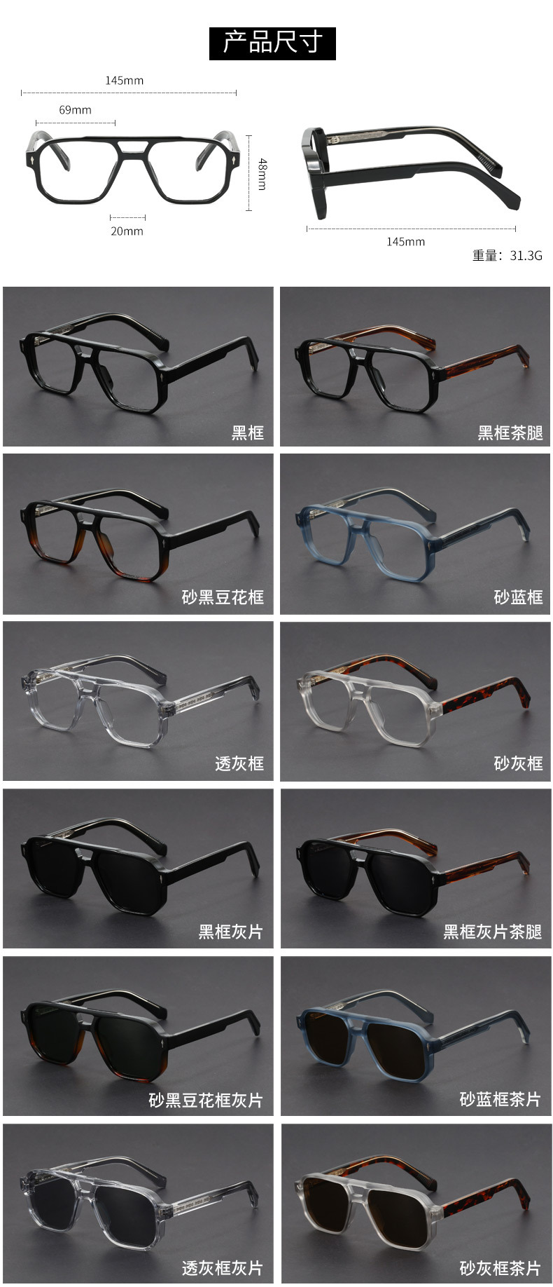 • 블랙 프레임 대모갑 다리 올 그레이