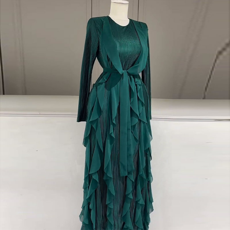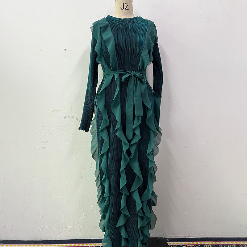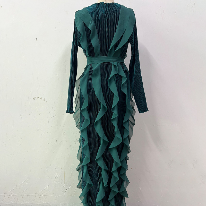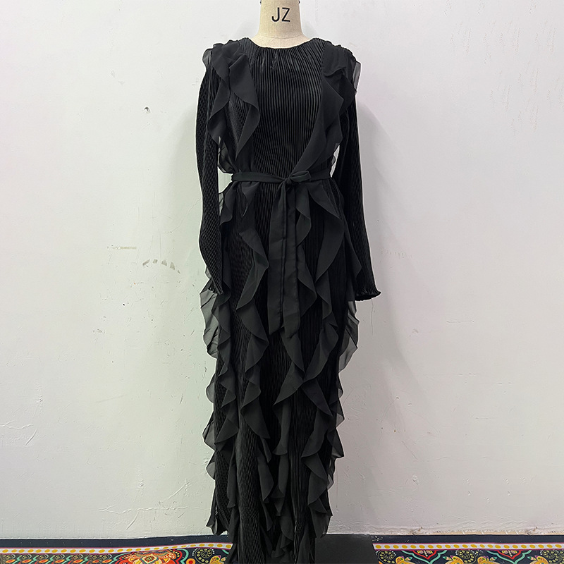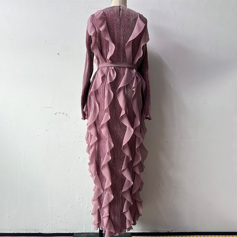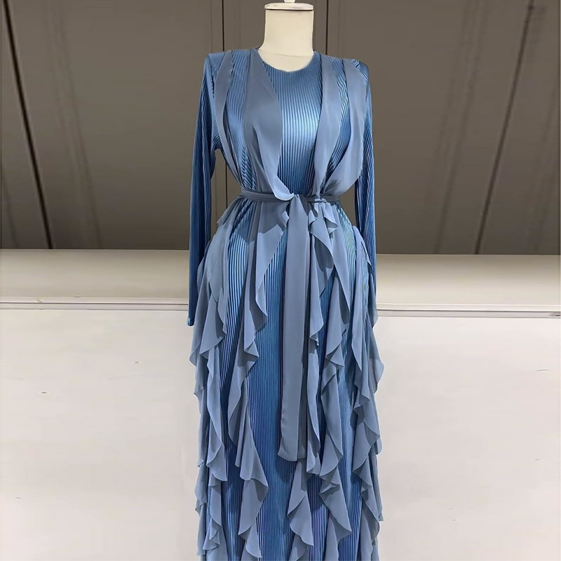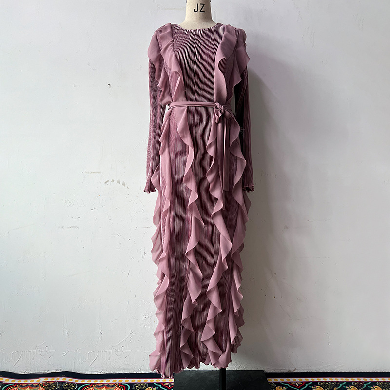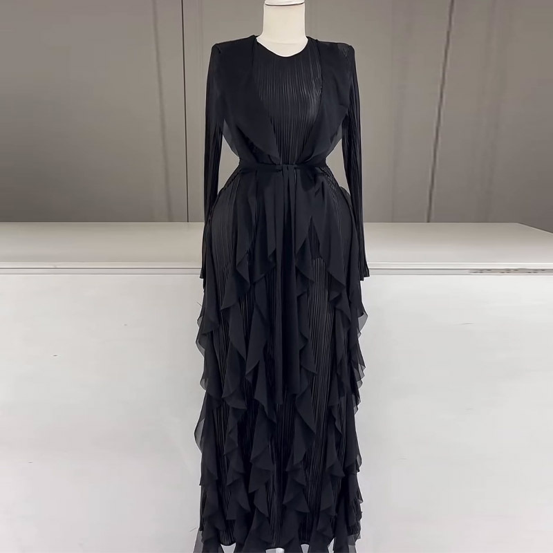 2024 대외 무역 새로운 디자인 감각 주름 주름 원피스 기질 여성 패션 하이 엔드 리본 원피스