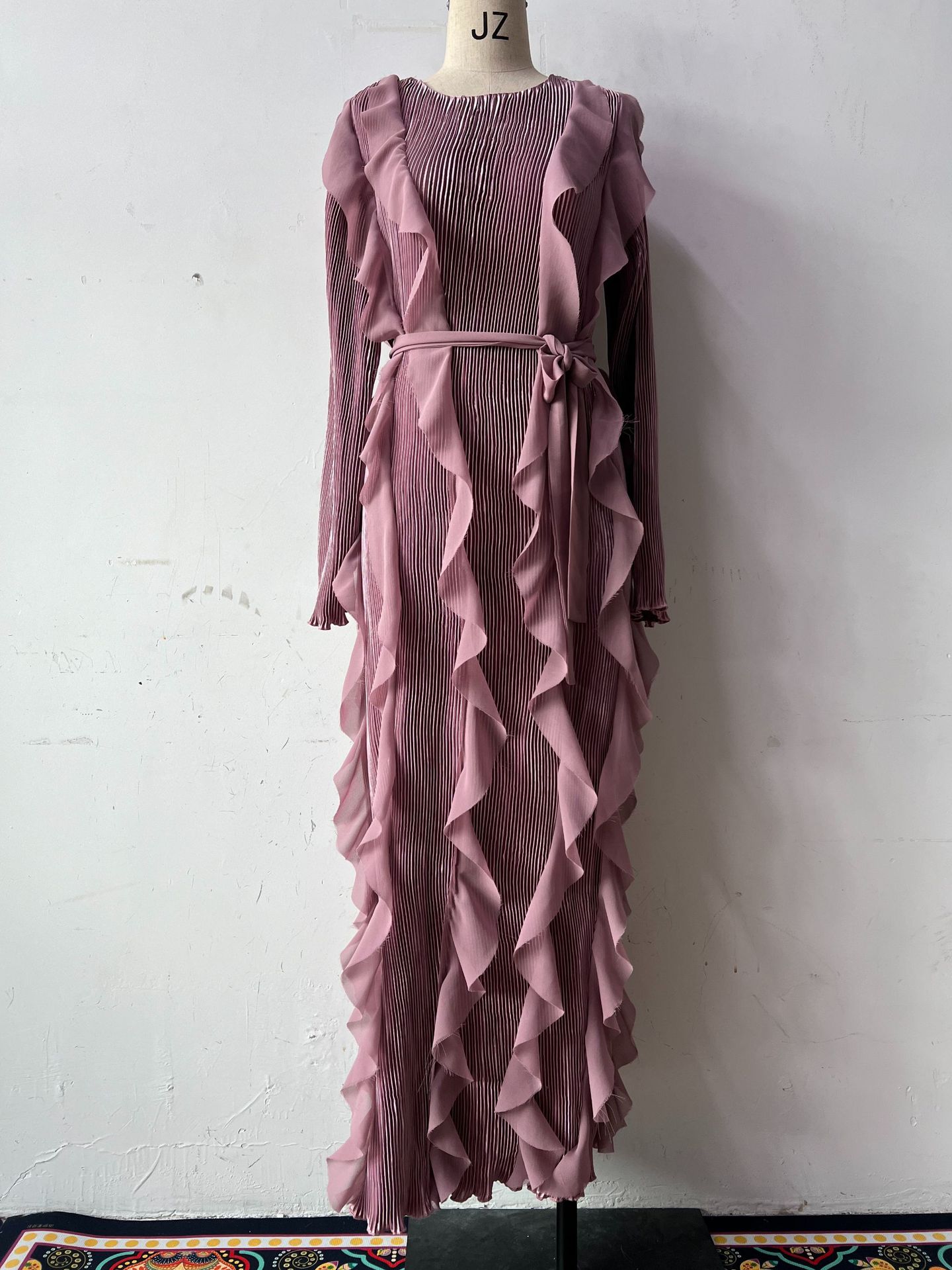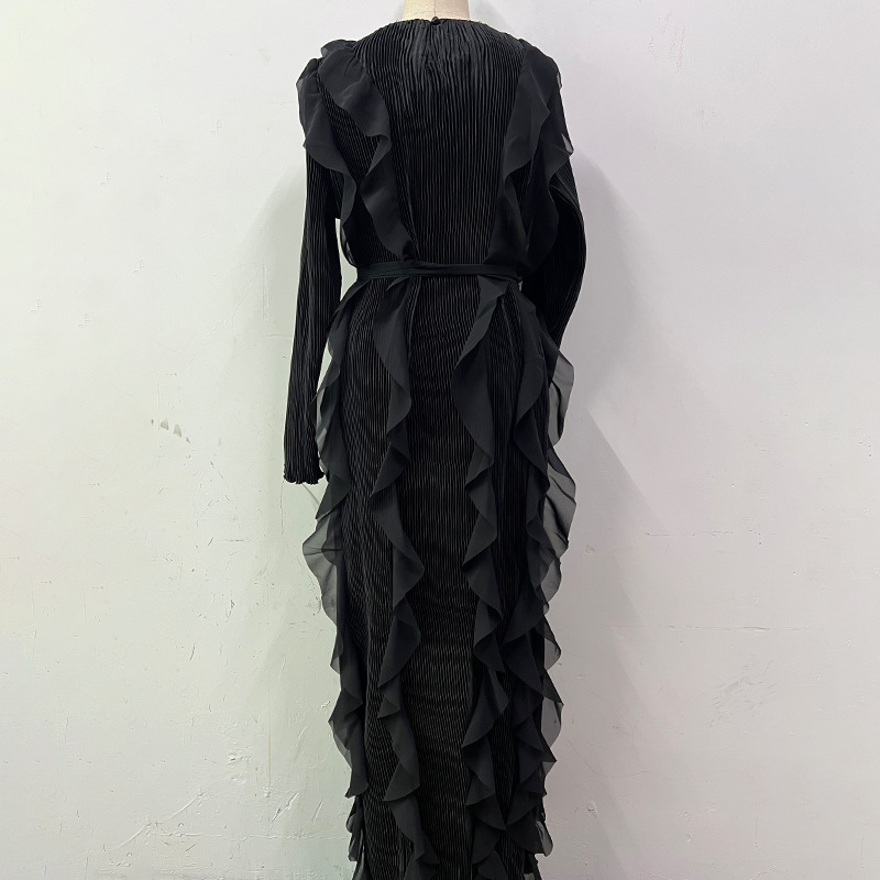2024 대외 무역 새로운 디자인 감각 주름 주름 원피스 기질 여성 패션 하이 엔드 리본 원피스스토어 가기