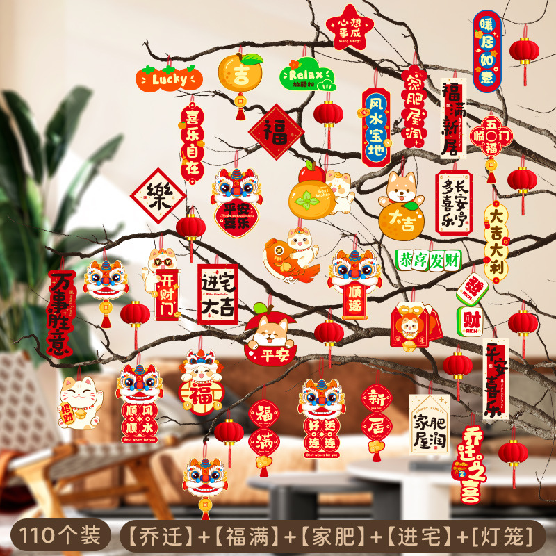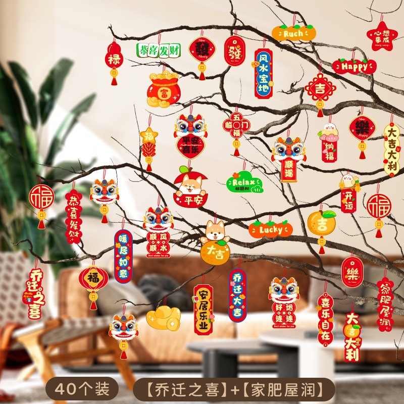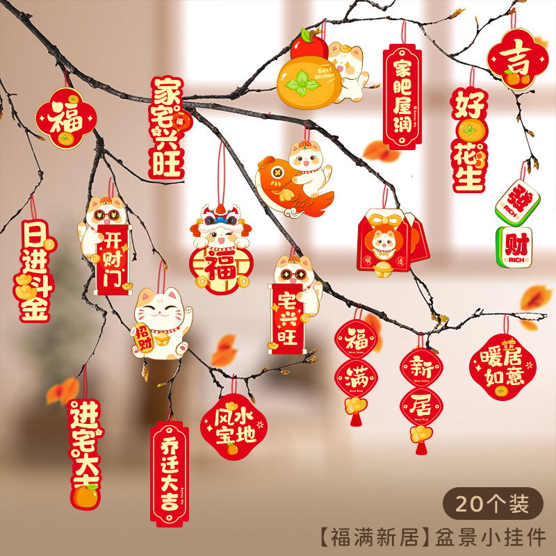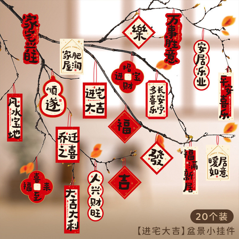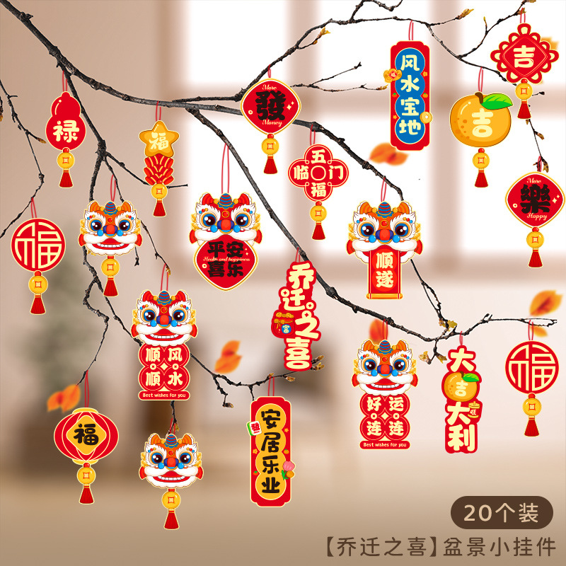 행복한 집들이 작은 랜턴 펜던트 새 집 장식 집 녹색 나무 분재 행운의 펜던트로 이동스토어 가기