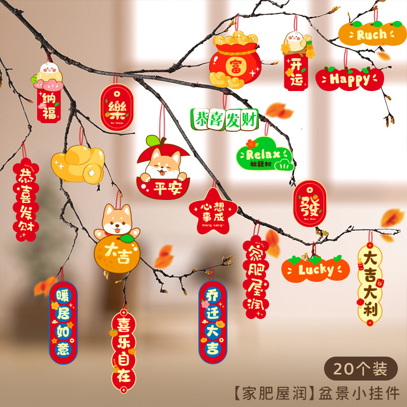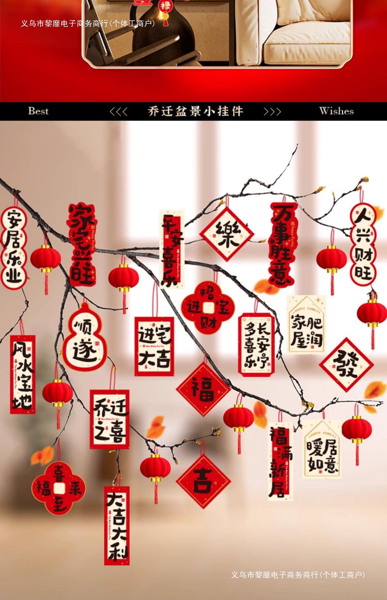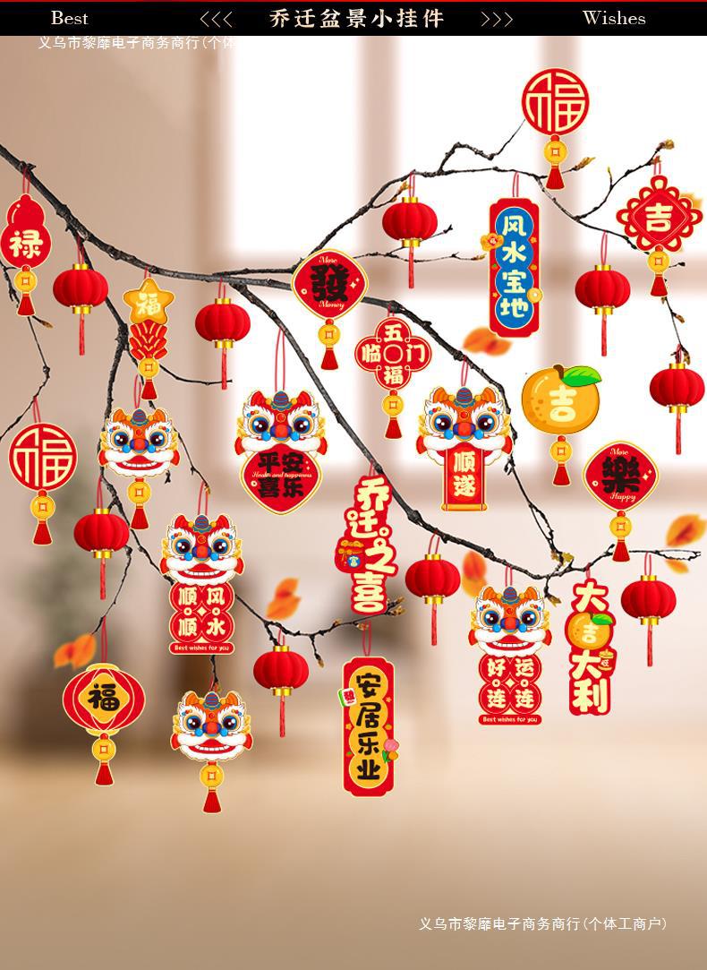 행복한 집들이 작은 랜턴 펜던트 새 집 장식 집 녹색 나무 분재 행운의 펜던트로 이동