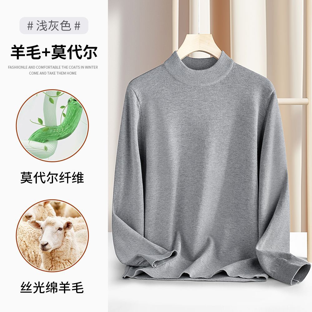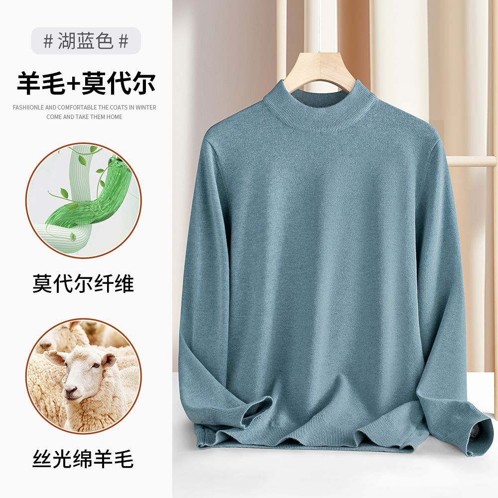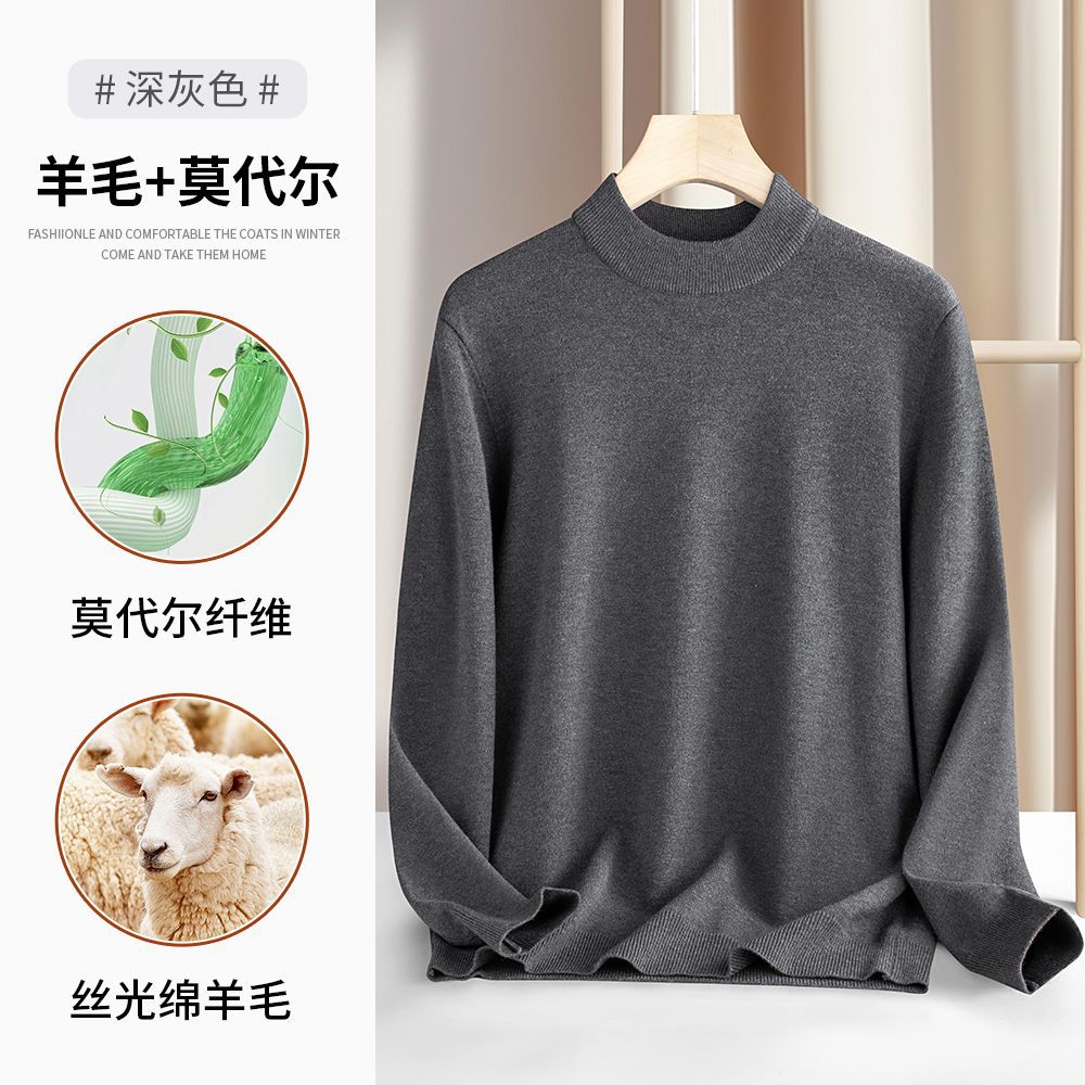 Mercerized Wool Modal Half-turtleneck 스웨터 남자의 가을과 겨울 중간 목 기지가있는 따뜻한 고급 니트 스웨터