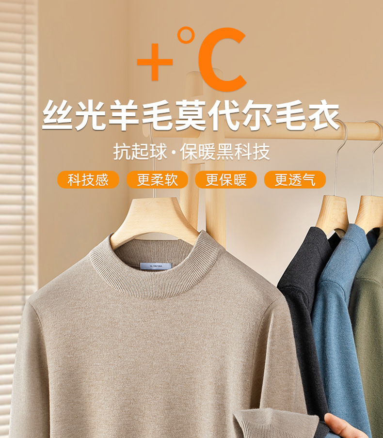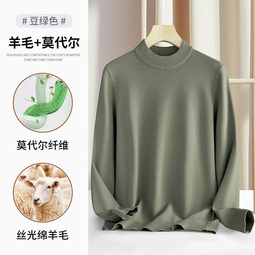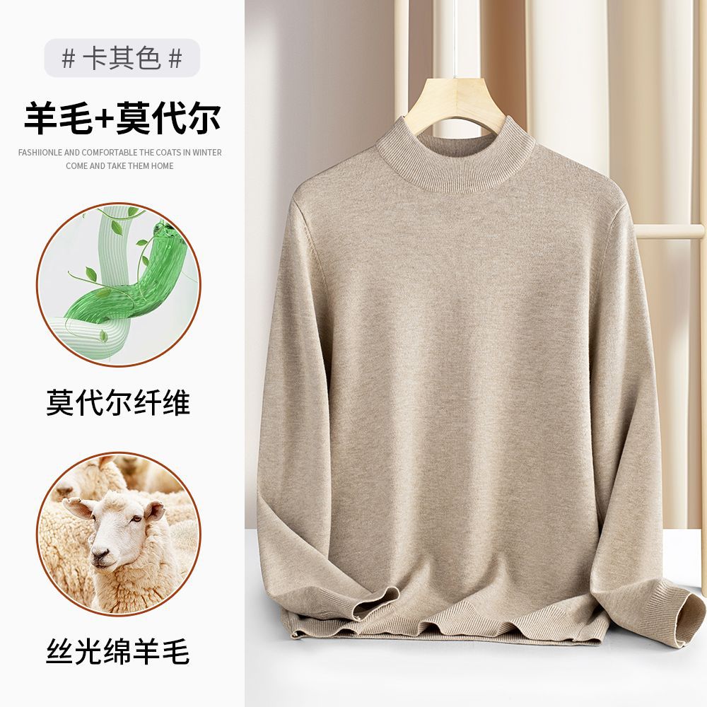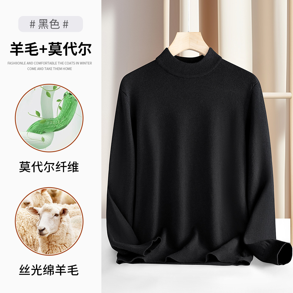 Mercerized Wool Modal Half-turtleneck 스웨터 남자의 가을과 겨울 중간 목 기지가있는 따뜻한 고급 니트 스웨터