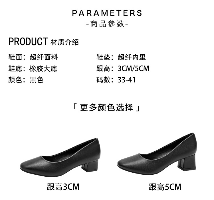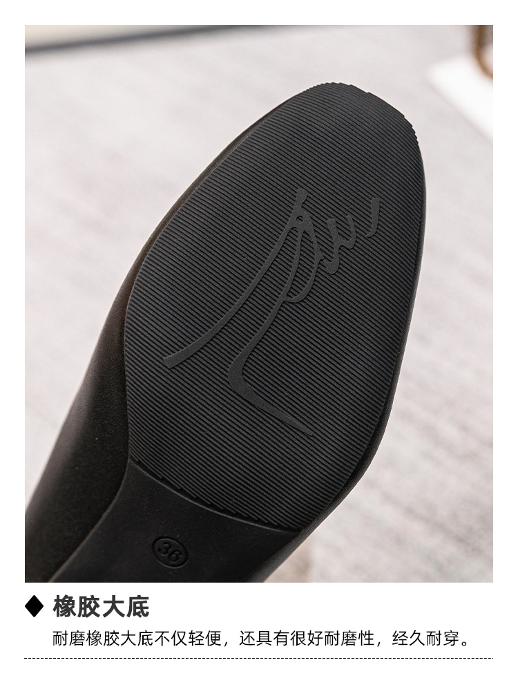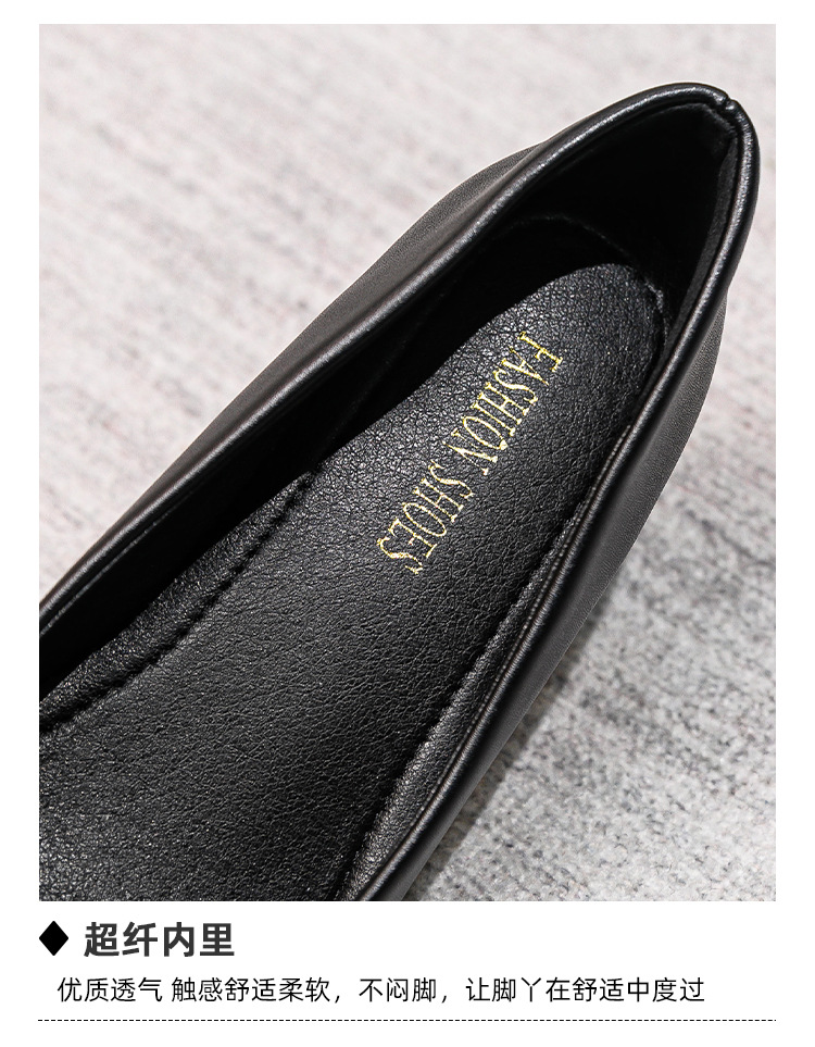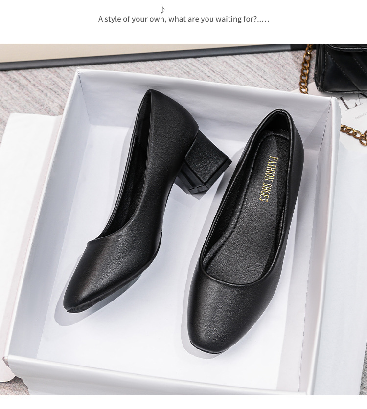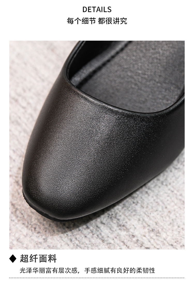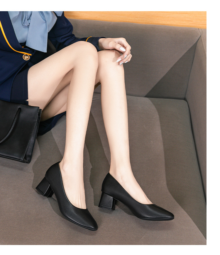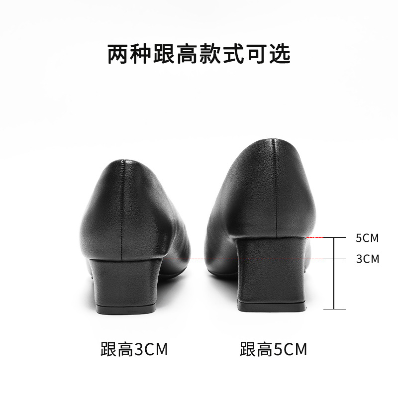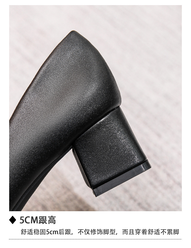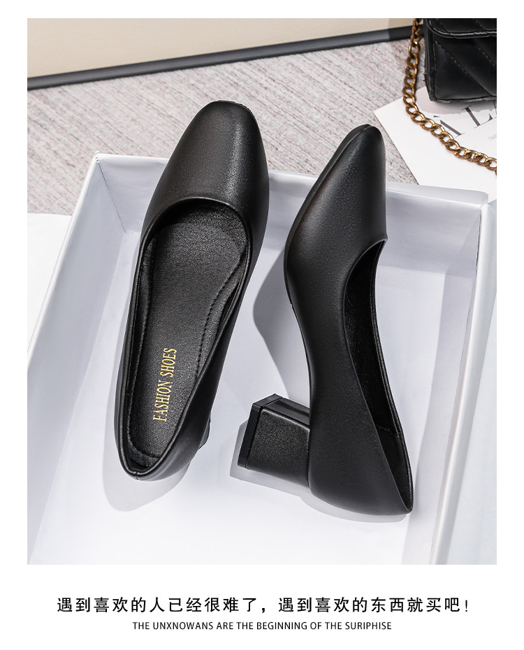 소프트 솔 신발 여성용 얕은 입 가죽 신발 중간 힐 두꺼운 힐 블랙 작업 신발 스퀘어 헤드 오피스 편안한 프론트 데스크