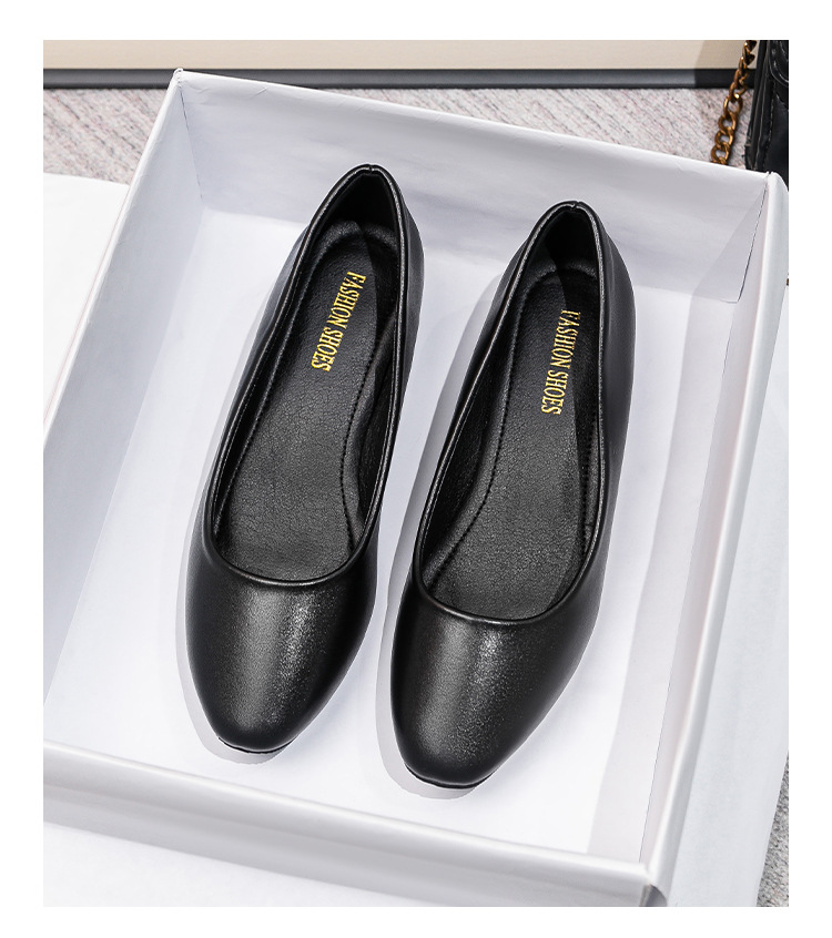 소프트 솔 신발 여성용 얕은 입 가죽 신발 중간 힐 두꺼운 힐 블랙 작업 신발 스퀘어 헤드 오피스 편안한 프론트 데스크스토어 가기