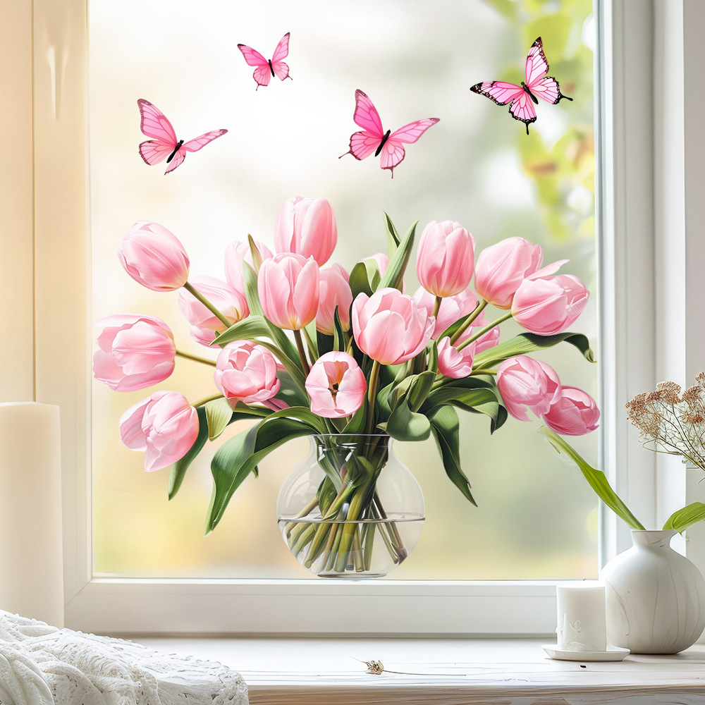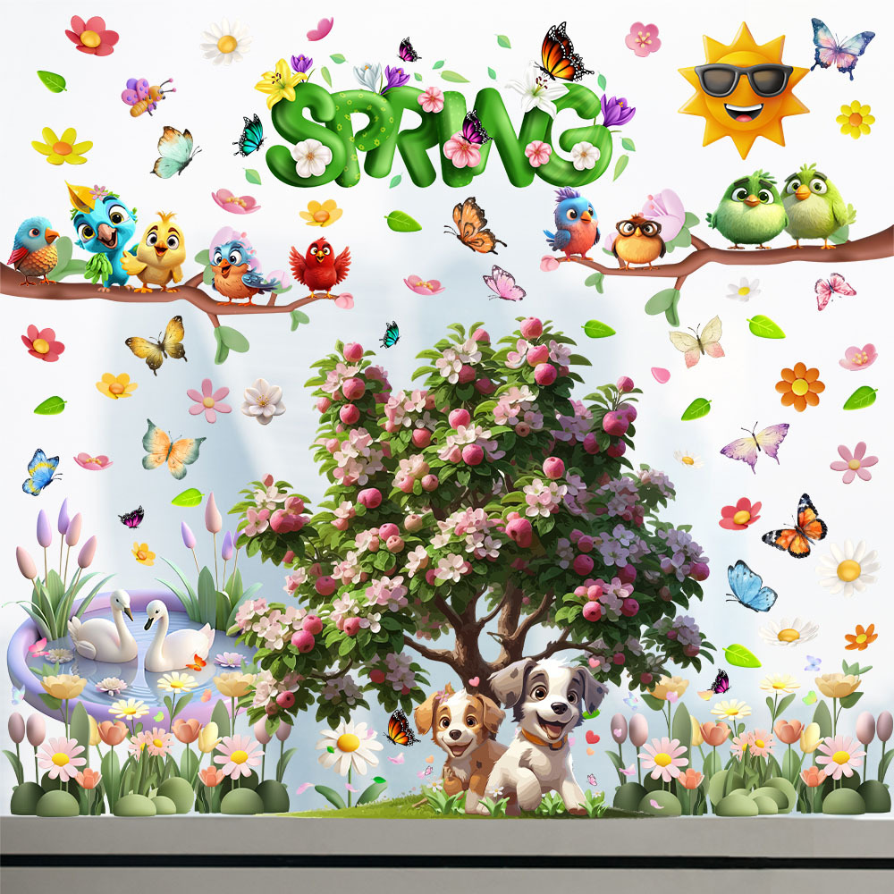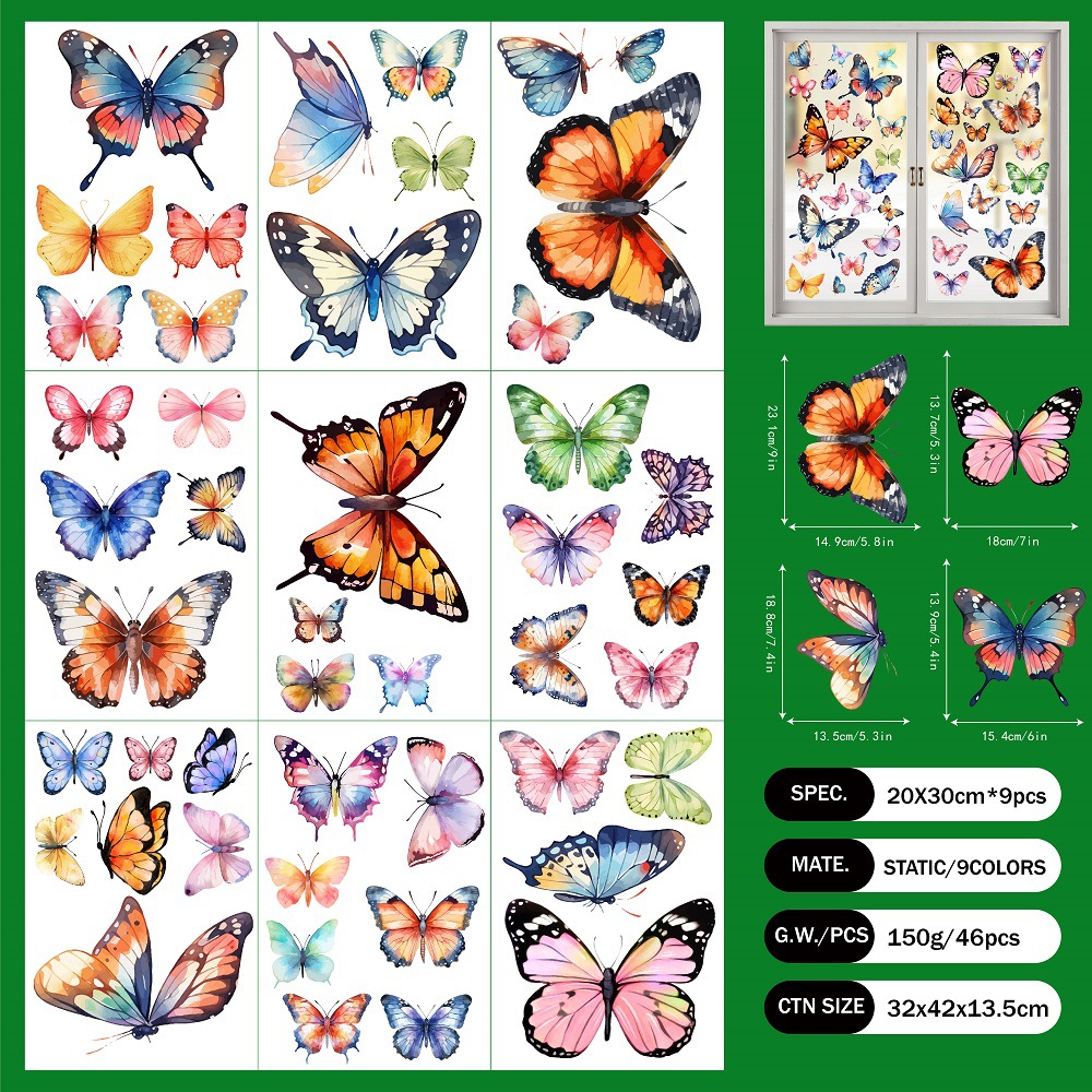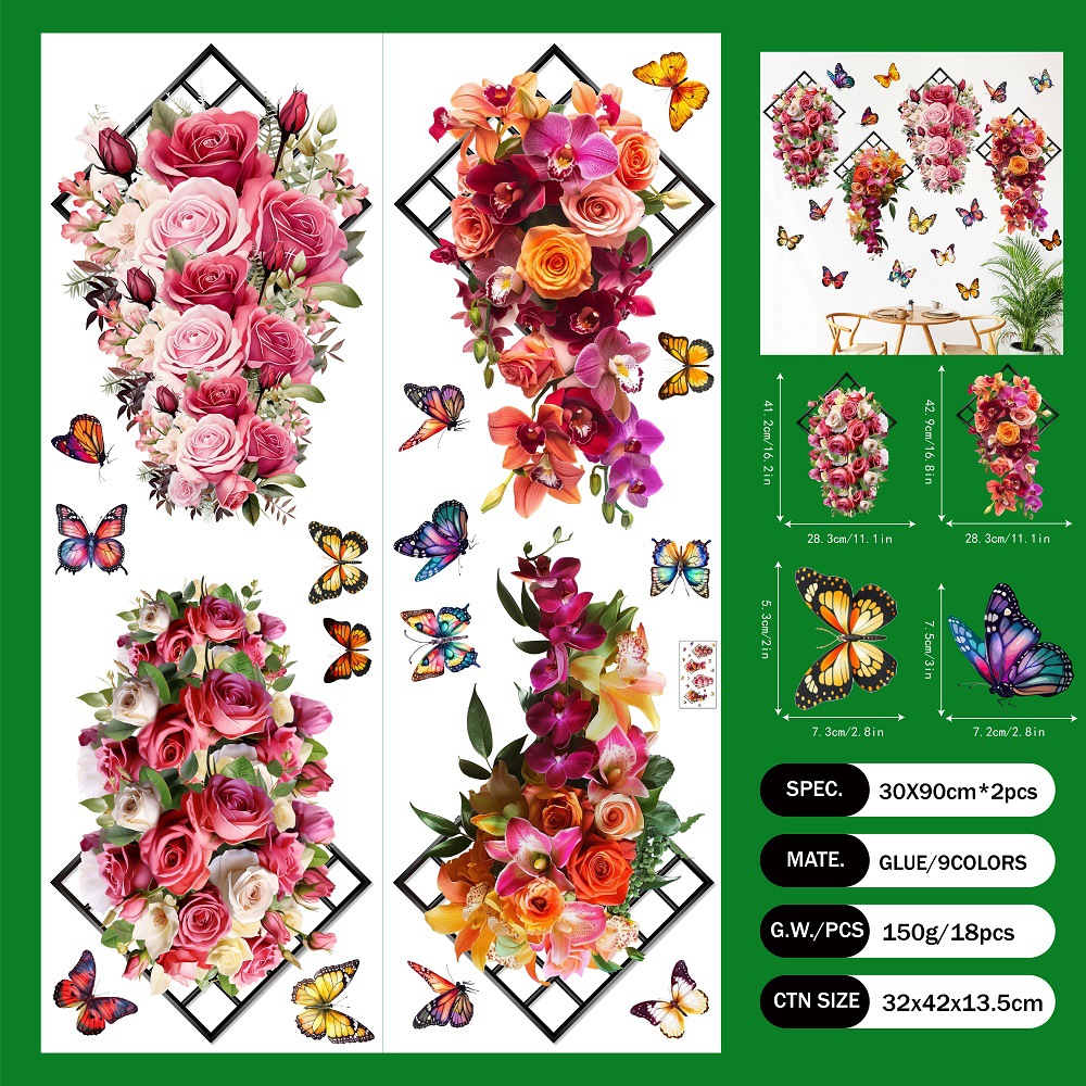 Yiyao 공장 직접 봄 분위기 새 나비 꽃 조합 스티커 방 발코니 거실 정전기 스티커스토어 가기