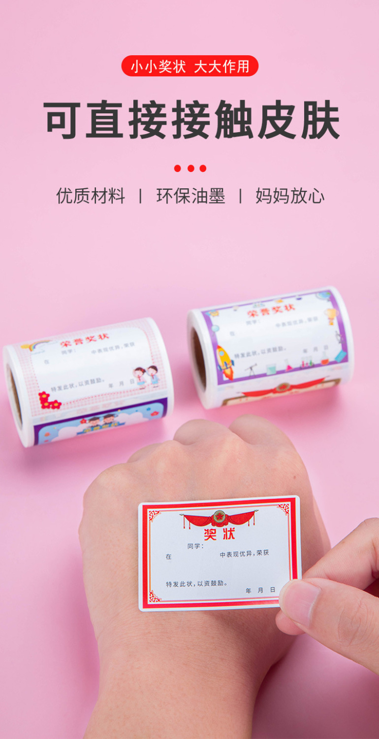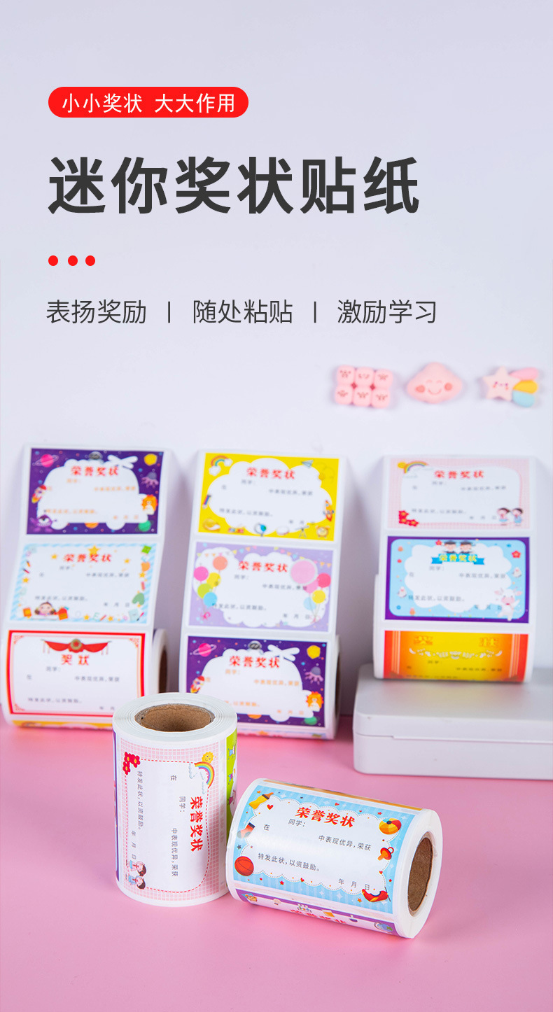 롤링 된 500 명의 스티커 리워드 미니 어워드 스티커 추적없는 어린이 칭찬 스티커는 아이들이 배우도록 장려합니다.