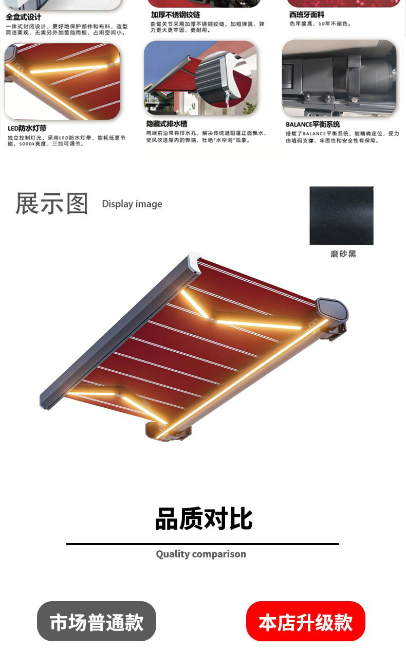 가벼운 국경 수출 풀 박스 캐노피와 함께 풀 박스 전기 개폐식 차양 안뜰 빌라 발코니 개폐식 차양
