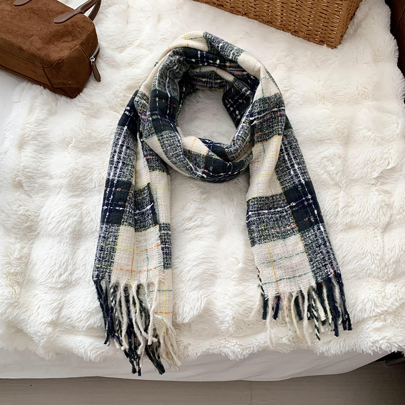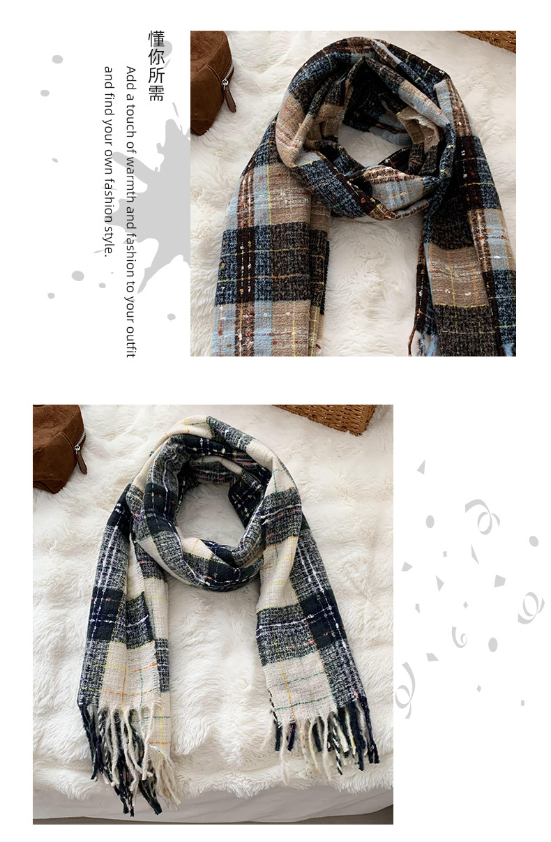 가을과 겨울 하이 엔드 따뜻한 스카프 새로운 도착 올 매치 레트로 콘트라스트 컬러 플레이드 올 매치 술 목도리 두꺼운 스카프스토어 가기