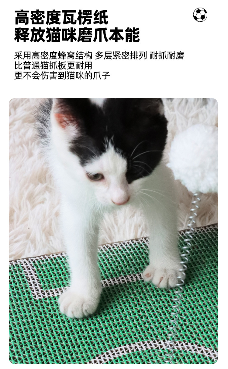 축구장 모양 고양이 스크래처, 내마모성, 긁힘 방지, 부스러기 없는 고양이 장난감, 고양이 발톱 갈이 도구, 골판지 고양이 스크래치 벽 스티커