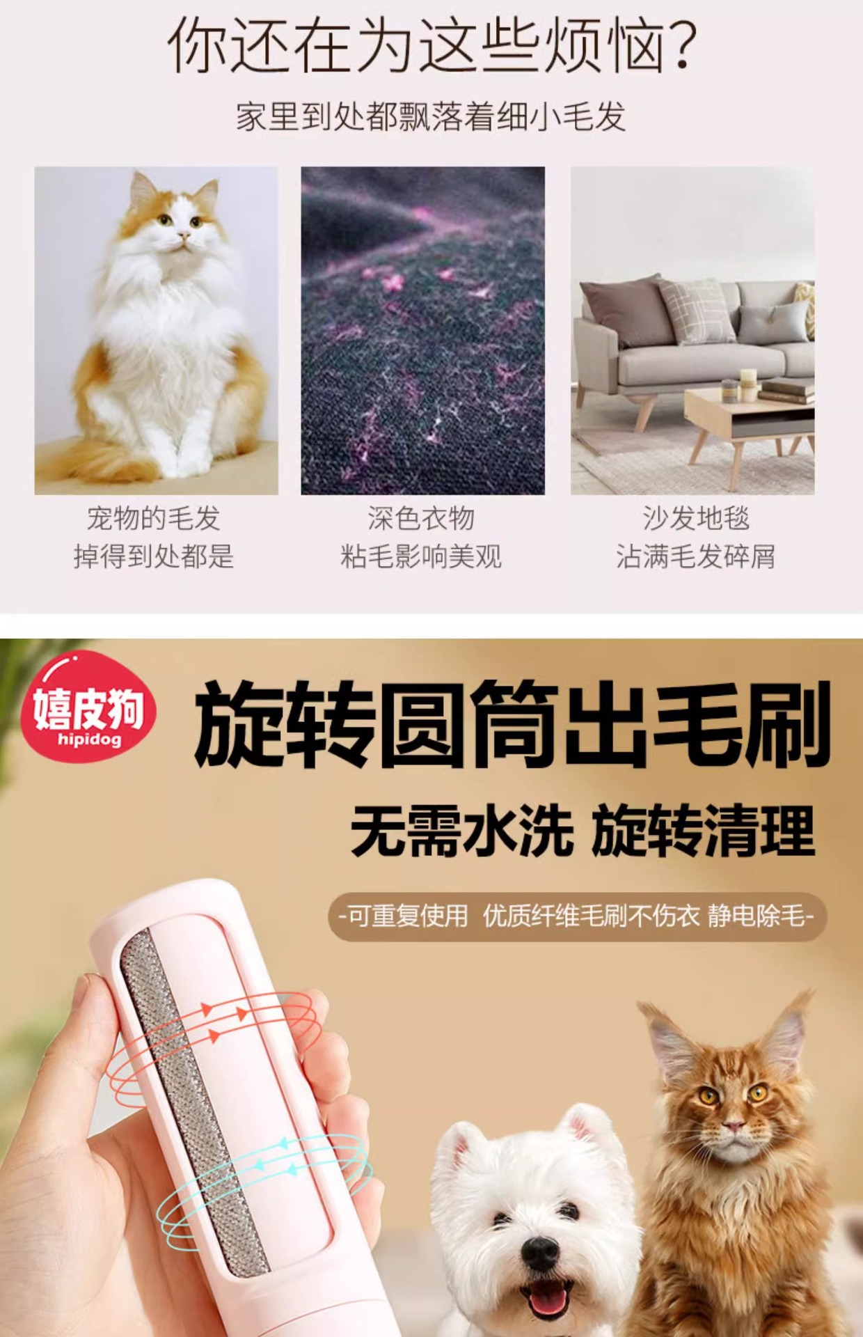 회전 실린더 개 머리 제거 브러시 롤러 고양이 청소 고양이 머리 끈적 애완 동물 머리 제거 도구 도매