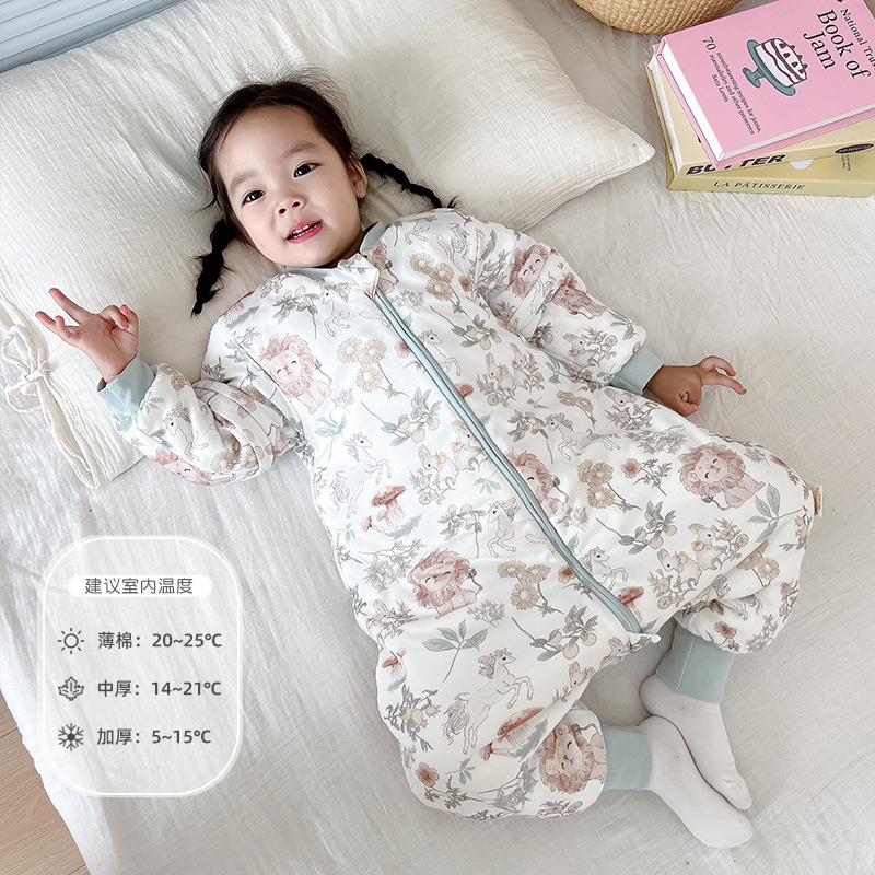 어린이용 침낭 봄, 가을, 겨울 남녀 아기용 다리 분리형 방한 이불 탈부착 가능 반소매 순면 A급 일체형 온도조절스토어 가기