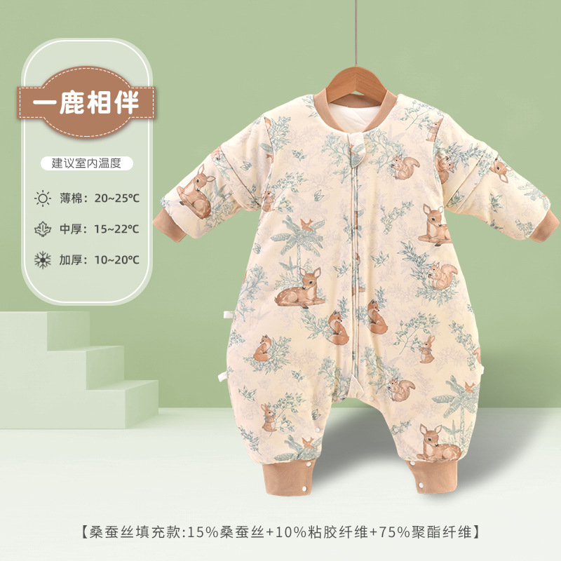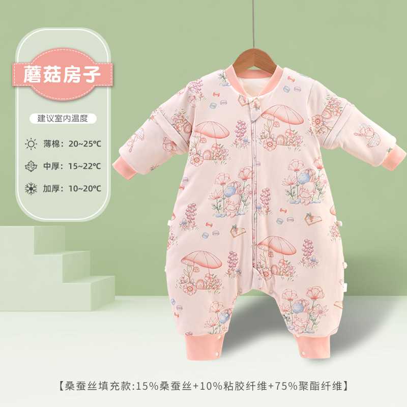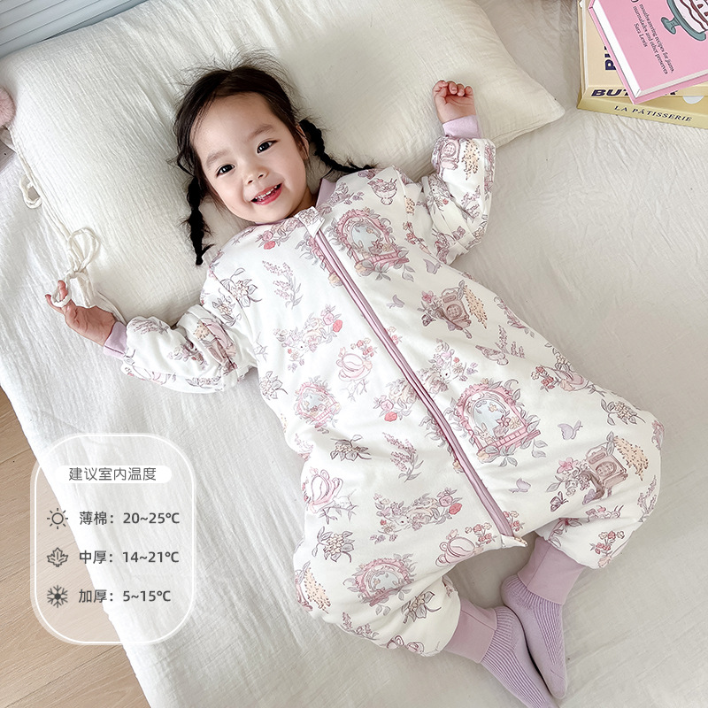 어린이용 침낭 봄, 가을, 겨울 남녀 아기용 다리 분리형 방한 이불 탈부착 가능 반소매 순면 A급 일체형 온도조절