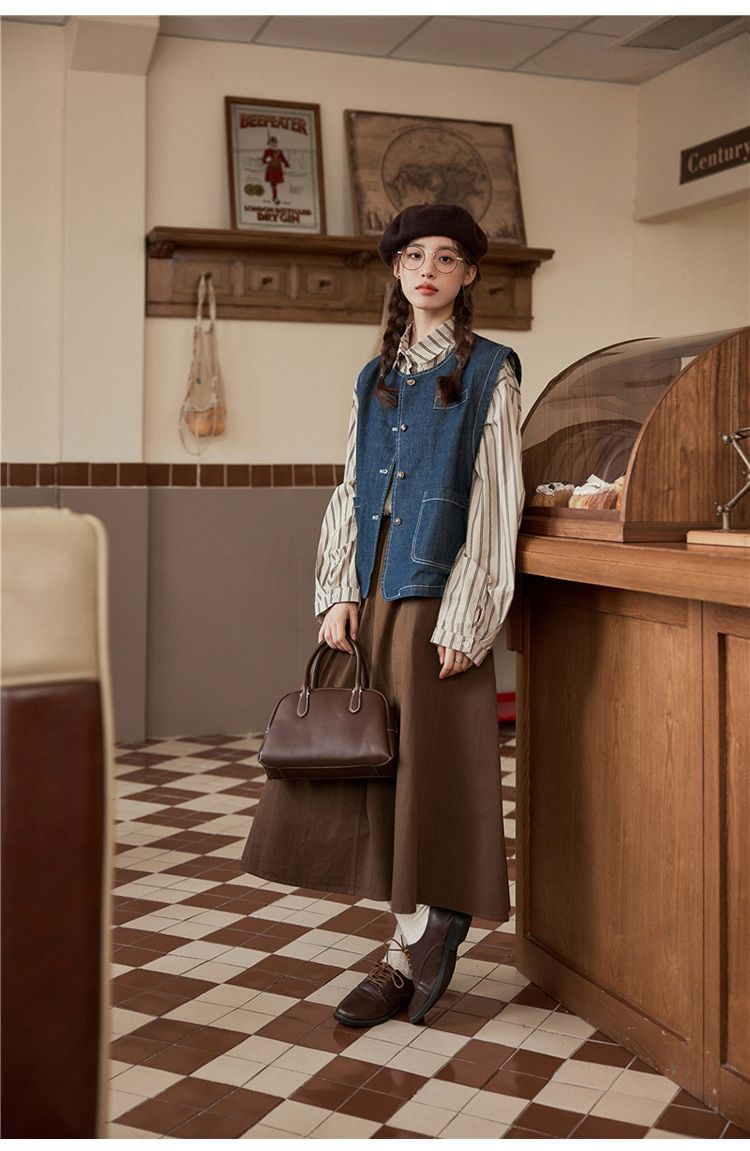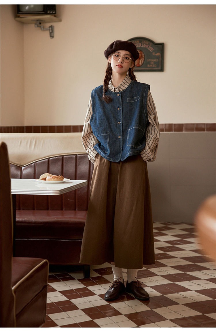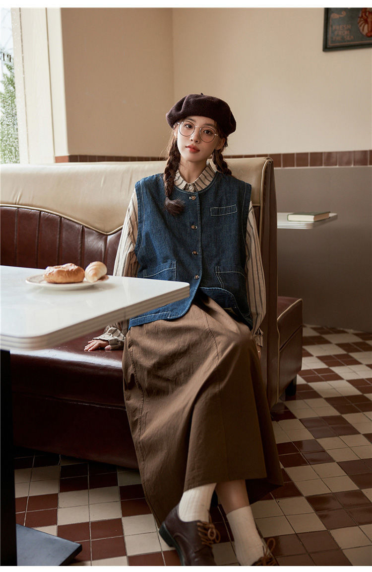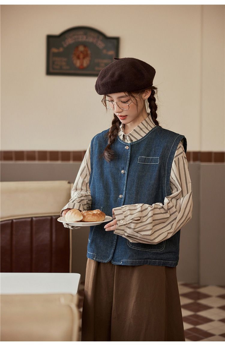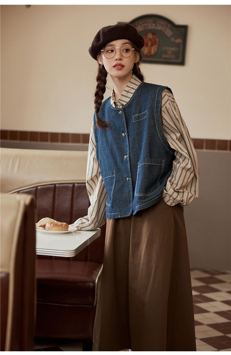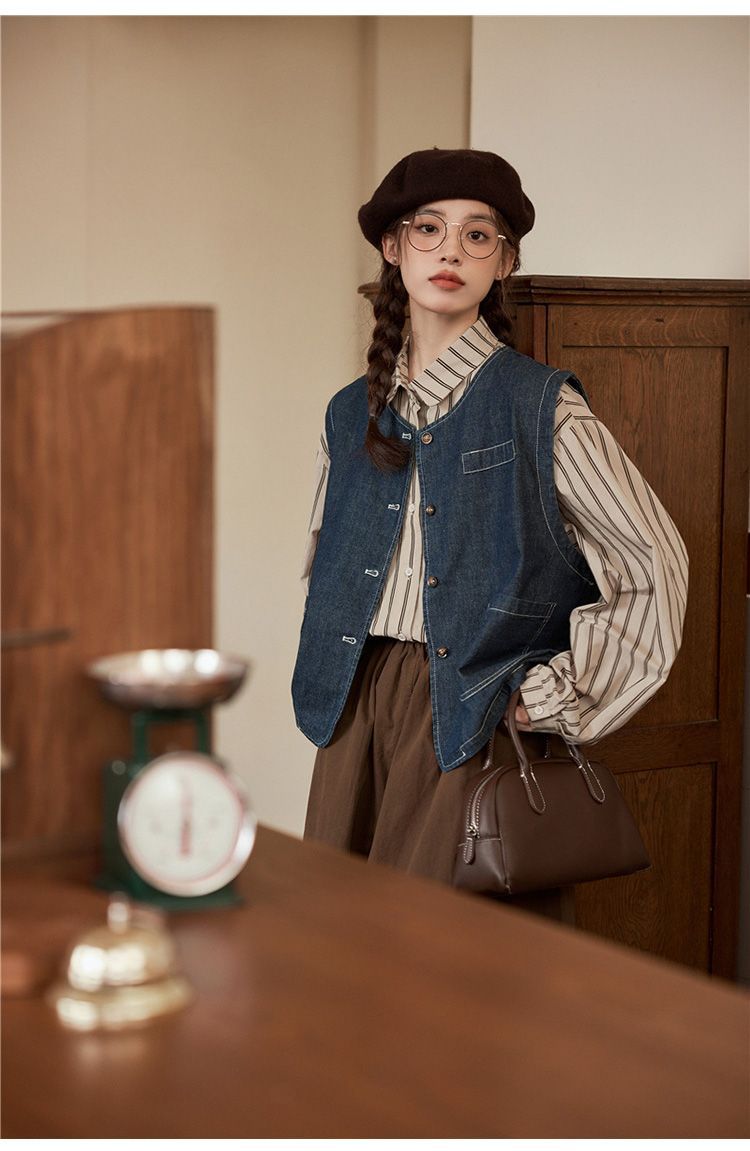 일본 빈티지 데님 조끼 조끼 재킷 여성 가을 2024 새로운 스타일 겹침 셔츠 조끼스토어 가기
