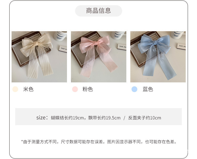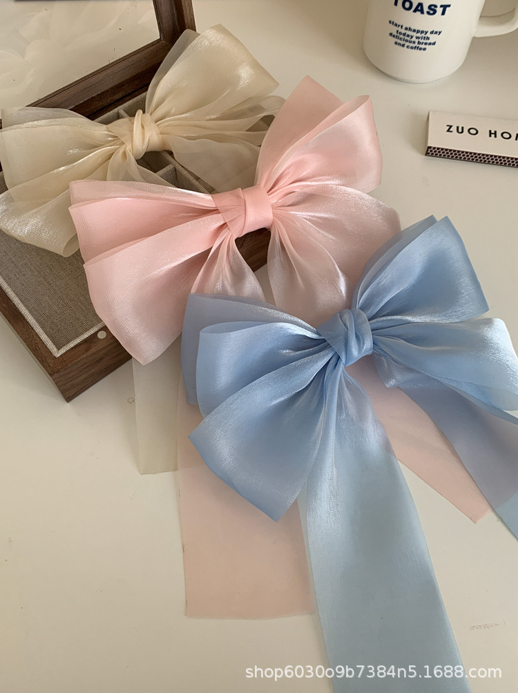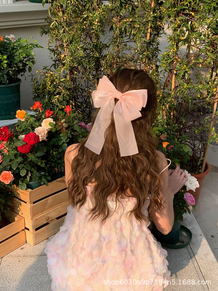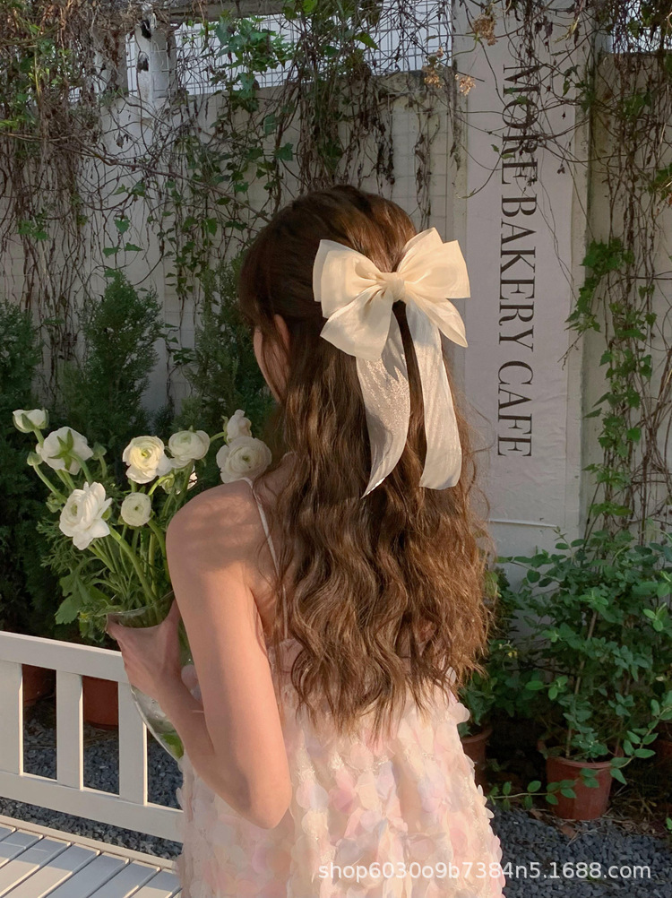 크림 달콤한 메쉬 활 머리핀 슈퍼 요정 탑 클립 다시 머리 소녀 머리핀 헤어 액세서리 2023