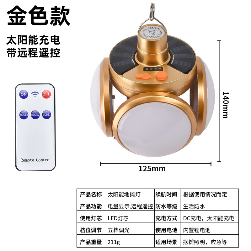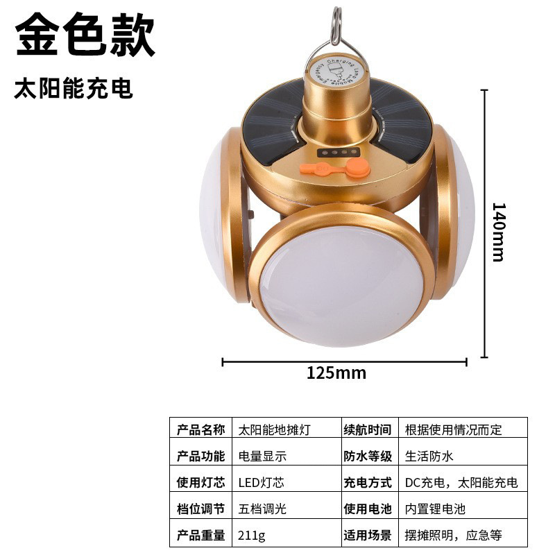 태양열 축구 램프 긴 배터리 수명 충전식 캠핑 램프 5면 발광 야외 다기능 접이식 가정용 전구 램프