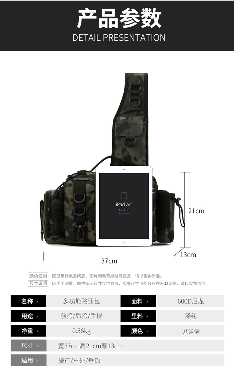 국경 도매 새로운 대용량 야외 전술 배낭 다기능 낚시 멀티 포켓 낚시 가방 남성 허리 가방