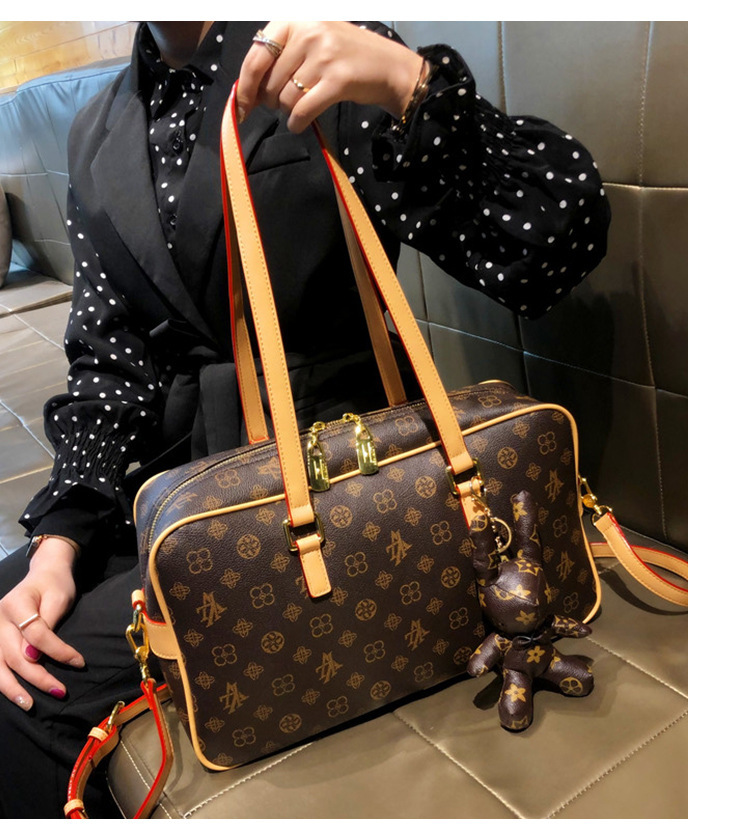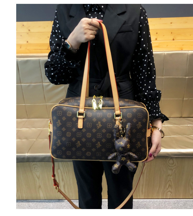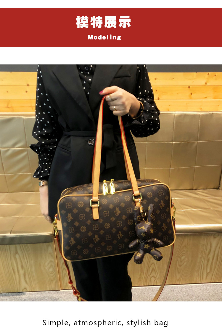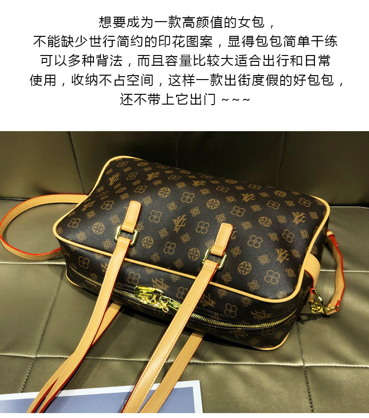 香港品牌女包2024新款大容量休闲斜挎旅行包时尚真皮单肩波士顿包